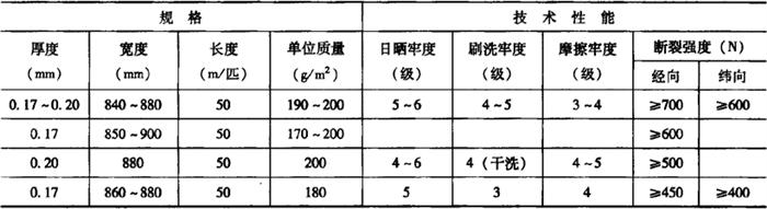 释义 | 玻璃纤维印花贴墙布 玻璃纤维印花贴墙布,简称玻纤印花墙布,它是以中碱玻璃纤维织成的布为基材,表面涂以耐磨树脂,并印上彩色图案而制成。玻璃纤维印花墙布本身具有布纹质感,经套色印花后,装饰效果较好,且色彩艳丽,花色繁多,在室内使用不褪色、不老化,尤其防火性和防水性好,耐湿性强,可用肥皂水洗刷,价格低廉,施工简单,粘贴方便。玻璃纤维印花贴墙布适用于宾馆、饭店、商店、展览馆、会议室、餐厅、居民住宅、工厂净化车间等内墙装饰,特别适用于室内卫生间、浴室等墙面的装饰。 但是,当墙布表面树脂涂层一旦磨损后,将会散落出少量玻璃纤维,使用时一定加以注意。另外,玻璃纤维印花墙布在运输和储存过程中,应横向放置、注意放平、切勿立放,以免损伤两侧布边,影响施工时拼接图案。 玻璃纤维印花贴墙布的厚度为0.15~0.17mm、幅宽800~840mm,每平方米的质量为200g左右。玻璃纤维印花贴墙布的主要规格和技术性能,如表22-18所示。 表22-18 玻璃纤维印花贴墙布的主要规格和技术性能 |