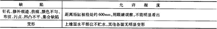 表6-59 胶衣型浴缸其他缺陷的允许程度