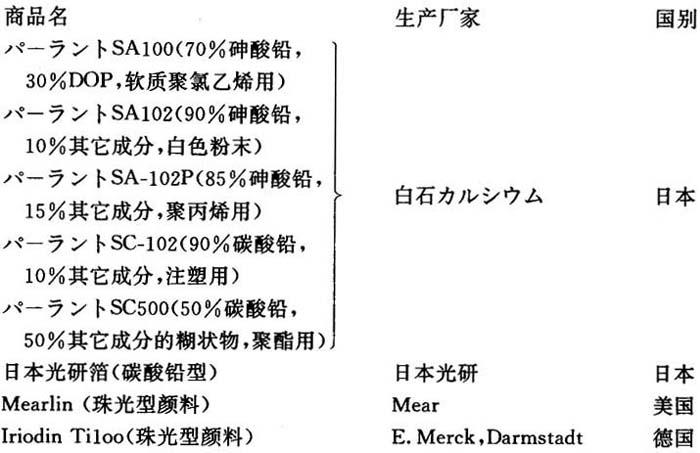 近来还出现了一种珠光型颜料,它是由二氧化钛涂于云母表面所制成,在塑料中既有良好的着色性,又可赋予美丽的珠光。