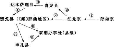 ①1912年称郎如宗;1942年改称江龙宗,系郎如宗的江龙地方划出设置的。②1959年7月5日设立青龙县和班戈县。③1960年1月青龙县更名为达木萨迦县。④1964年5月达木萨迦县并入班戈县。⑤1977年3月析申扎县置双湖办事处;1978年班戈县的色瓦区划归双湖办事处。⑥1987年班戈县新吉区的统一乡划归申扎县。