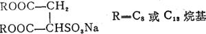 释义 | 琥珀酸二酯磺酸钠 结构式 性能 无色或浅黄色液体,有发泡、去污、润湿等表面活性,泡沫量不如烷基硫酸盐、醇醚硫酸盐和烯基磺酸盐,但它与上述混合则产生丰富泡沫。对人肤刺激性小,对头发有良好的梳理性能。 质量规格(美国Hodag公司)(见上页表) 用途 用于纺织、橡胶、造纸、石油、金属、塑料工业润湿剂。在生产香波、泡沫浴、牙膏等和干洗剂、工业清洗剂中作表面活性剂。 国外生产公司 美国Hodag、American Cyanamid,日本东邦化学公司,德国Hüls、Hoechst公司。 |