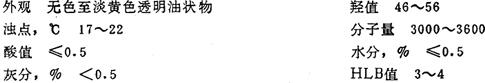释义 | 甘油聚氧丙烯聚氧乙烯嵌段共聚物 别名 GPE消泡剂 结构式 性能 低温下溶于水,高于浊点时在水中呈扩散状。具有良好的消泡及抑泡作用。 质量规格(海安石化总厂) 用途 适于抗菌素及味精的生产,是较植物油、高级醇更有效的消泡剂(约为其20~30倍)。 包装 200kg铁桶装。 国内生产厂 江苏海安石油化工总厂。 |