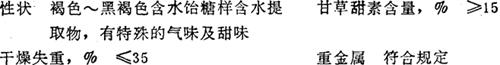 性状 为褐色~黑褐色含水饴糖样的粘性提取物,有特殊的气味及甜味