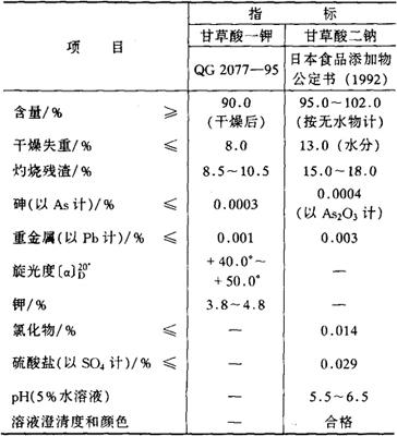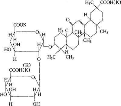 制法 以天然物甘草为原料,用水抽提后加钾碱进行部分中和,精制得甘草酸一钾。完全中和,精制则得甘草酸三钾。