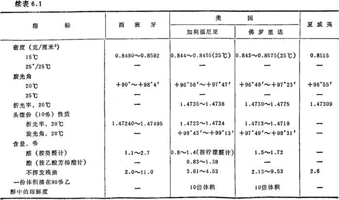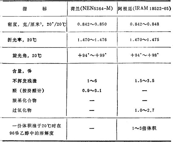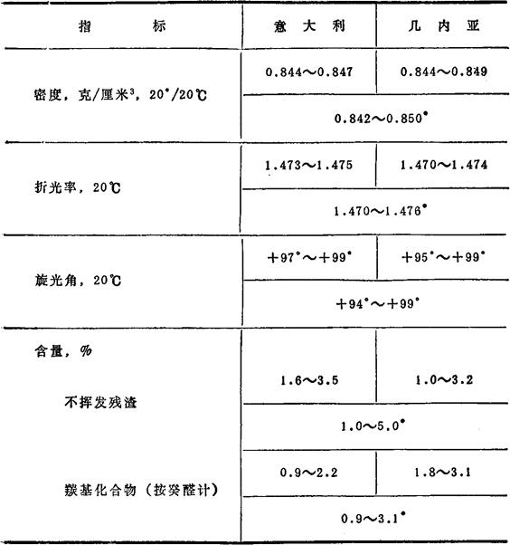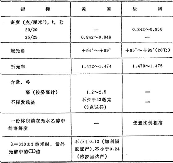 释义 | 甜橙油 甜橙油是从甜橙〔Citrus sinensis(Linn)Osbeck:C.Vulgaris Risso Subspc. Sinensis; C. auranthium L. Var dulce(Var.Sinensis)〕的皮和成熟的整果,用机械冷压制得的。甜橙油的得率为0.5~0.67%。 甜橙油的主要生产国有美国、意大利、西班牙、墨西哥、几内亚、以色列和一些南美国家。 甜橙油是一种黄色或橙黄色的液体,具有橙果的香气,没有苦味。油遇冷时会变浑浊。 甜橙油中含有:α-蒎烯、α- 在甜橙油的不挥发残渣里,已检出有5,6,7,8,3′,4′-六甲氧基黄酮,5,6,7,8,4′-五甲氧基黄酮以及5,6-二羟基-3、7,3′,4′-四甲氧基黄酮和5,7-二甲氧基香豆素。 甜橙油的组成,性质和质量与其加工方法,采果时间,生长地点以及橙树的种类有关。 各地生产的甜橙油性质见表6.1。 表6.1 各国产甜橙油的物理化学指标 各国标准和药典对甜橙油质量要求见表6.2~6.5。 表6.2 根据法国标准(FDT75-203-65)和NCO TK 54№3140-76,意大利和几内亚甜橙油的质量指标 注:标准中还指出下述国家生产的甜橙油中羰基化合物含量的极限值:罗得西亚和南非共和国1.0~2.5;中美各国1.5~2.7;北美各国0.9~2.5;以色列0.9~1.6。 *容许范围。 表6.3 根据英国标准(BS2999/43∶1971),几内亚和意大利甜橙油的质量指标 注:标准中还指出下述国家生产的甜橙油的羰值的极限值:罗得西亚和南非共和国3.6~9.0;西印度群岛各国5.4~9.7;北非各国3.2~9.0;以色列3.2~5.8。 *容许范围。 表6.4 根据荷兰和阿根廷标准甜橙油的质量指标 表6.5 根据美国和法国药典甜橙油的物理化学指标 根据TY18-16-09规定,甜橙油(从法国和意大利进口的)应符合下列质量指标: 密度,克/厘米3,20℃ 0.845~0.851 折光率,20℃ 1.472~1.476 旋光角 +96.5°~+98.5° 含量,% 醛(按癸醛计) 1.5~2.7 不挥发残渣 1.2~4 一份体积油在96%乙醇中的溶解度 0.5~1倍体积 已确定了天然甜橙油的一些特有的比例和含氧部分的基团组成。如其含酯量为1.08~1.53%,羰基化合物为0.75~1.12%,而这两值之比为1.09~1.81。美国佛罗里达州生产的甜橙油,其含氧部分平均含有59.6%的醛;4.8%的酸;3.7%的酯和31.9%游离醇。用水蒸气蒸馏甜橙皮所获得的精油,其含氧部分平均含有46.4%的醛,1.2%的酸,29.3%的酯以及23.1%的游离醇。 常用水蒸气蒸馏压榨后的橙皮所得到的油,柑桔油去萜时分出的产物以及纯煤油、矿物油、乙二醇单乙醚和松节油等伪造甜橙油。 为了鉴别真伪,可取50毫升油样以每秒钟一滴的速度进行真空蒸馏,取原油样10%容积的头馏分,测定其折光率和旋光角。如系非伪造的天然甜橙油,则其头馏份(10%)的旋光角不应比油样高出2°,折光率也应比油样低0.001~0.002。甜橙油的这些指标,表6.1里已列出。 甜橙油宜包装在橙黄色玻璃制或白铁皮制容器里,若短期存放可用镀锌铁制容器。包装时要塞严并尽量装满,在不高于15℃条件下存放在暗处。 甜橙油可用于制造糖果、啤酒和无酒精饮料以及调配香水和花露水用香精、肥皂和化妆品加香等。 |
