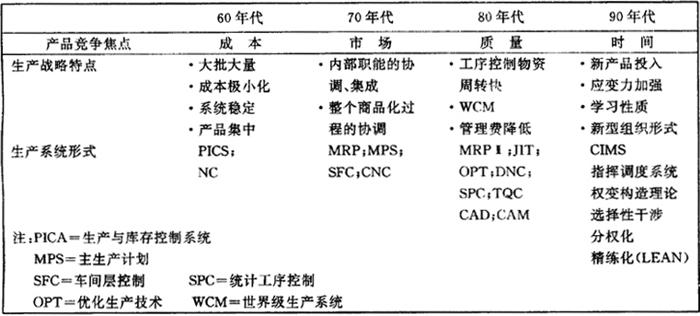 释义 | 生产战略与产品竞争战略 1.生产战略理论 当提及“生产战略”或“制造战略”时,可能会有人认为,“生产管理居然也有战略可言?”但是,从第一章有关部分的讨论中已经可以看出,现代生产管理与传统的生产管理相比,已经发生了很大的变化,因而也随之带来了许多新课题。其中之一,即为生产管理中的战略决策问题。因此,现在已不再需要考虑生产中应不应有战略作指导的问题,而是应考虑究竟什么是生产战略,它在企业对生产系统的要求与生产系统所具备的能力之间究竟如何发挥联接作用的问题。 (1)生产战略的概念 ①生产战略 生产战略是企业根据所选定的目标市场和产品特点来构造其生产系统时所遵循的指导思想,以及在这种指导思想下的一系列决策规划、内容和程序。作为一系列决策的结果,生产战略是关于生产系统如何成为企业立足于市场、并获得竞争优势的战略性计划;作为一系列决策的过程,生产战略为实现生产系统在企业中的有效性规定了明确的决策内容、程序、原则和模式。因此,生产战略具有三个特点:第一,贡献性,它强调对企业竞争优势的贡献,通过对产品目标的明细化使生产系统功能具有优先级而保证竞争优势的突出,为企业竞争提供了坚实的产品和后援保障;第二,一致性,它强调生产系统与企业要求的一致性,同时也强调生产系统内部结构与非结构要素的一致、协调关系,以此来保证整个生产系统的目标及其优先级;第三,操作性,它强调战略既是一种计划思想,又应便于贯彻实施,因此它注意各个决策之间的目标分解、传递和转化过程以形成各级人员的共识和参与,同时并注意各项决策的内涵及其相互一致性以保证决策的实施明确、可行。 ②生产战略的地位与作用 生产战略对于保证生产系统的有效性无疑是至关重要的,但它毕竟不是整个企业的战略;它能够对公司的某种产品提供市场竞争优势的保障,但由于目标市场的差异,这种战略一般并不适用于公司内的其它产品。根据决策内容的特点,一般企业的战略都可被分为三个层次:公司级战略、部门级战略和职能级战略,生产战略属于职能级战略,担负着支持部门(或产品)战略的义务,它们之间的关系如图4.2.1-1示。在企业战略的最高层是有关整个公司经营内容、从事何种事业、具有什么使命、如何调配资源的总体经营战略;中间层是各个不同产品事业部的竞争战略,它要对部门的经营内容及其在市场上竞争优势的取得进行战略分析与规划,如果某一企业只是单一产品经营,没有事业部划分,公司战略与部门战略则是同一种战略,内容可合二为一;第三层是部门内的职能战略,其内容除了对各自职能、使命的定义外,更重要的是明确部门对各职能规定的目标,以及实现这些目标的战略措施。 图4.2.1-1 生产战略在企业战略中的地位与作用 (2)生产战略的决策过程 按照生产战略具有构造有效的生产系统这一基本特性,生产战略的核心决策过程可是由两个主要部分组成的。第一,生产系统功能目标决策,包括根据用户的需求特性和企业的竞争战略来定义产品的功能,再由产品将这些功能转换为对生产系统的功能目标;第二,生产系统结构的决策,它是根据既定的系统功能目标和生产系统固有的结构-功能特性,进行生产类型的“匹配”,这种匹配过程是通过调整系统结构与非结构化要素实现的。通过以上两个关键步骤便可实现生产系统对其产品市场竞争优势的保证。 生产战略对生产系统的设计过程与传统的设计过程有两个明显的差异。第一,生产战略强调了对产品竞争实力的保障,通过目标优先级的决策实现了产品竞争优势,而传统方法一般仅以成本和效率为中心,强调系统的高产出与规模经济;第二,生产战略强调了系统各要素间在生产类型结构框架下的协调性,而传统方法由于过份强调高效率与最现代化技术的应用,往往使系统内部的要素组合失调,不能最佳地发挥出那种结构的潜力。总之,生产战略认为生产系统是企业的竞争之本,只有具备了生产系统本身的竞争优势才能赢得产品在市场上的竞争优势,也才会有整个企业成功,因此整个生产战略理论是以竞争及其优势的获取作为基础的。 除了对产品竞争优势的保证功能外,生产战略理论还在进一步发展。人们在探讨生产系统实现了有效性之后生产战略如何帮助系统在运行过程中不断改善效率。实际上,这部分理论已不再是单纯地解决效率问题,由于它是在确保了系统有效性的前提下对运行效率的改善,已在很大程度上消除了生产系统的功能悖论约束,致使系统可以在一个更新、更高的层次上展开竞争,因此生产战略的系统发展理论也被上升到与系统竞争理论相平行的重要地位,两者共同构成了现代生产管理中的战略理论体系。关于生产战略的竞争理论与发展理论将分别在第二、三节中继续深入地进行探讨。 2.产品竞争策略 企业间的竞争,甚至国家间的竞争,主要都是围绕着产品展开的;而产品间的竞争又始终是围绕在能否更好地服务于用户这一中心,竞争的焦点集中于产品基准功能之上的优势功能特性。因此,怎样确定产品的优势功能便成为了产品竞争策略的关键,为此引入一对新概念MQC和OWC,进一步对产品竞争策略的决策过程进行分析。 (1)用户的满意与快乐(Satisfied vs.Delighted) 用户对产品的要求如上节所述可分为六个方面、两个层