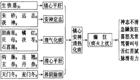 【要点】 本方治在于心,兼顾肝脾。重镇安神与养心安神并重,不失为治神志病之良方。生铁落为君药,与代赭石同功,能镇心,镇肝,安魂魄,定神志。