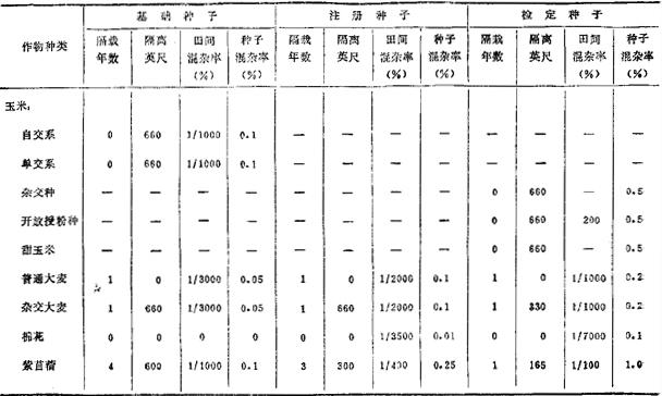 表5-1 田间检验要求和品种纯度标准