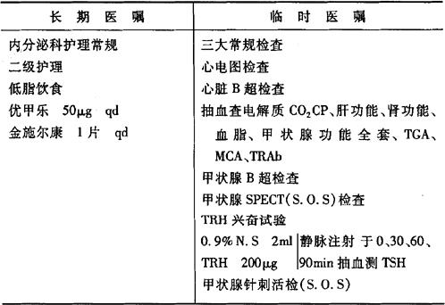 (3)替代治疗过程中注意心率、心律不齐、心绞痛、多汗及体重下降等过量症状,并适当调整剂量,维持剂量应使血清T4正常,TSH正常或稍高于正常低值。