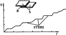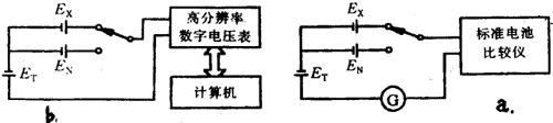 释义 | 电压计量 1.电压的概念 电位差、电势差和电压是同一个量的不同名称,其符号为U,其定义是:1,2两点间的电位差(电压)为从1点到2点的电场强度线积分: 式中r为距离。而“电动势”这个量(其符号为E),则表示电源供给的能量被它输送的电荷量除。上述两个量的单位均为伏特(V)。当电源内部没有电流通过时,其电动势即等于它两输出端之间的电压。 2.伏特及其复现 在安培被定义之后,伏特单位可以根据电功率和机械功率相等的原则及电功率公式由安培及瓦特两单位导出,或利用上一节所介绍的绝对测量方法复现。但这些方法都非常复杂,不可能用于日常的单位保存和复现。实际上,一百多年来,各国的计量机构都是采用标准电池来保存和复现伏特单位的。 利用化学电池作为电压标准始于十九世纪初,1836年丹尼尔(Daniell)就研制出了一种用于电气测量的电池,1872年克拉克(Clark)研制出了另一种电动势更为稳定的化学电池,并在随后的30多年中被国际上采用作为电压标准。1892年惠斯顿(Weston)提出的“惠斯顿电池”(就是现在的饱和中性标准电池)具有比克拉克电池更好的稳定性,因此很快就替代了克拉克电池,被国际上确定为电动势的标准。至今,饱和标准电池仍然在全世界范围内被广泛采用。从本世纪六十年代开始,固体电压标准(又称电子电压标准)和量子电压标准的出现,由于前者的使用方便和后者的高准确度,也逐渐地被广泛使用。特别是量子电压标准,已被近20个国家确定为电压单位的国家法定基准。下面对这三种电压(电动势)标准予以简单介绍。 (1)标准电池(惠斯顿电池) 根据电解液的浓度,标准电池可以分为饱和电池和不饱和电池两种。饱和电池(即惠斯顿电池)由于其稳定性比不饱和电池好,因此更广泛地用作为电动势标准。通常所说的标准电池,在不加说明的时侯均指饱和标准电池。图6.3-9给出了饱和标准电池的结构示意图及其各部分的材料成份。 1-汞(+极);2-镉汞齐(-极);3-硫酸亚汞(去极化剂);4-CdSO48/3H2O晶体;5-硫酸镉饱和溶液;6-铂丝;7-玻璃容器。 图6.3-9 标准电池的结构示意图 标准电池在20℃时的电动势一般为1.0186V左右,其主要特性参数为电动势的年稳定性和温度系数。标准电池的电动势——温度关系式为: Et=E20-[39.9(t-20)+0.94(t-20)2-0.009(t-20)3]10-6 式中Et为温度t时的电动势,E20为20℃时的电动势。由上式可见,标准电池的温度系数是比较大的,在20℃附近是每度40μV,而且这是电池两极温度系数的综合结果。实际上电池正极的温度系数是+310μV/℃,负极的温度系数是-350μV/℃。同时,当电池所处的温度发生变化时,电动势并不是同步地跟着变化,而是存在滞后现象。特别是当温度发生较大的变化时,滞后现象更为严重,有时甚至会造成电动势的不可恢复的变化。因此精度等级较高的标准电池必须保存在恒温油槽或空气控温箱中,且温度均匀性要高,保证标准电池两极间的温度梯度尽量小和稳定。 除上述对温度的要求外,标准电池还应避免受冲击和震动,倾斜不能大于30°,特别是在操作时严防使电池充放电。这些因素不仅会影响标准电池电动势的稳定性,甚至会使电池受到损坏。 (2)固体电压标准(齐纳二极管) 能提供稳定的参考电压的齐纳二极管是在本世纪50年代研制出来的。当时的稳定性较低,噪声也较大。目前的齐纳二极管与早期的相比已有极大的改进,稳定性已可与标准电池相比。为减小温度的影响,齐纳二极管一般都和一个或几个温度补偿二极管联接在一起。图6.3-10给出了带温度补偿的齐纳二极管及其I-U特性曲线。 用齐纳二极管做成的固体直流电压标准,其基本输出电压是10V,大多数型号还通过分压器给出1.018V和1V的输出。这类固体电压标准不怕一般的机械震动和冲击,不怕倾斜和翻转,温度系数小,可以输出高至10mA的电流而引起的误差只有0.1×10-6,甚至不怕输出端短路。这些特性正好克服了标准电池的固有缺点。10V输出的年稳定性可达(1~2)×10-6,且由于输出电压较高,端钮和引线热电势的影响可大大减小。因此,这是一种已逐渐广泛使用且前景很好的电压标准。 图6.3-10 齐纳二极管的I-U特性曲线 (3)约瑟夫森结阵电压标准——量子电压标准 约瑟夫森结阵电压标准是以约瑟夫森效应为基础的。 在极低温度(例如液氦温度)下,有些金属的电阻实际变为零,这种状态称为超导态,这种金属则称为超导体。如果两超导体间隔以(0.1~3)μm的绝缘层,称这两超导体为弱耦合(后来称这样的器件为约瑟夫森器件或约瑟夫森结)。1962年英国学者约瑟夫森(B.D.Josephson)从理论上预言,当电子对(又称库伯(Cooper)对)穿越两超导体之间这一极薄的绝缘阻挡层时,将会有如下效应发生: ①当一直流超导电流(其最大值称为临界电流Ic)通过上述阻挡层时,没有电压降产生。这称为直流约瑟夫森效应,并于1963年为安德森(P.W.Anderson)和罗威尔(J.M.Rowell)通过实验观察到。 ②当在约瑟夫森结的两端加一定直流电压U,则除了产生通常的传导电流外,在约瑟夫森结处还出现频率为fJ的交流超导电流,频率fJ和所加直流电压的关系为: 式中e为基本电荷,h为普郎克常数。这一现象称为交流约瑟夫森效应。当用频率为f的微波照射约瑟夫森结时,在结的两端将出现一系列的量子化电压台阶。这一现象为萨皮罗(S.Shapiro)于1963年首先观察到,故又称为萨皮罗台阶。图6.3-11为约瑟夫森结和萨皮罗台阶的示意图。