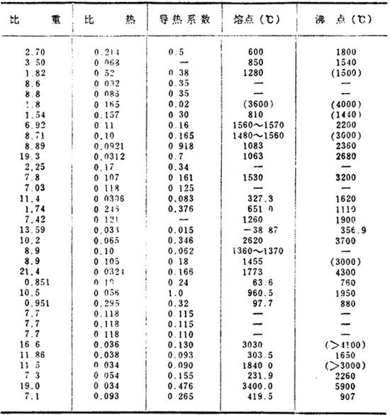〔未注明温度的均为20℃时的值,( )内的为概略值〕