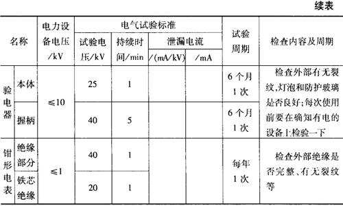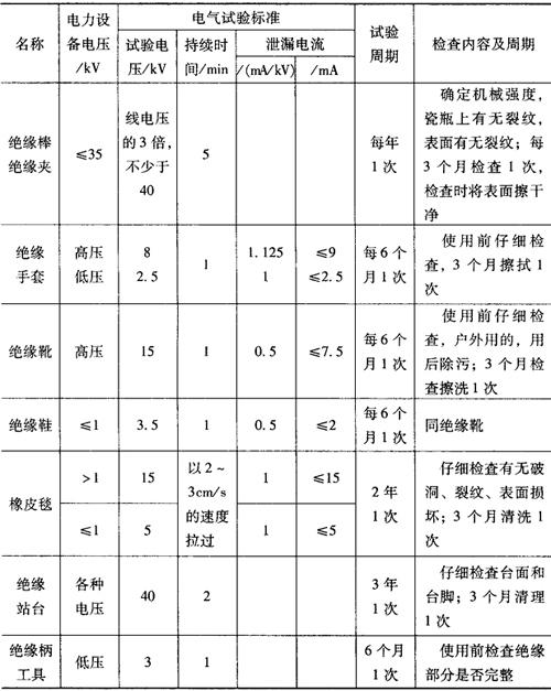 释义 | 电工安全用具的定期试验 为了避免发生触电事故,在电气设备上作业时必须使用安全用具。 安全用具的分类与作用见表11-18。 表11-18 安全用具的作用和分类 为了使安全用具使用安全,就必须对其进行定期的检查和试验,其试验要求见表11-19。 表11-19 安全用具的试验周期和标准 |
