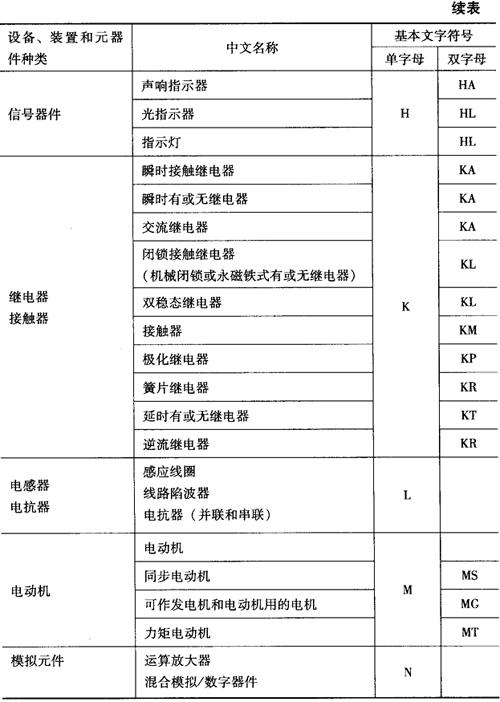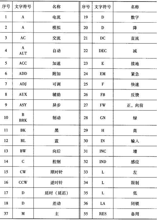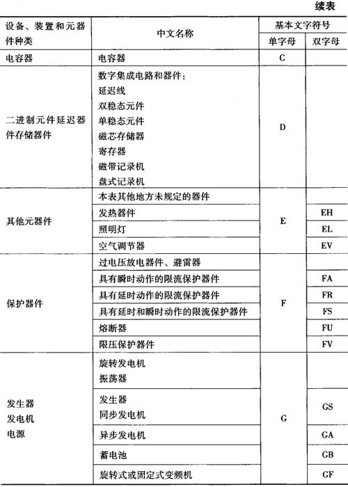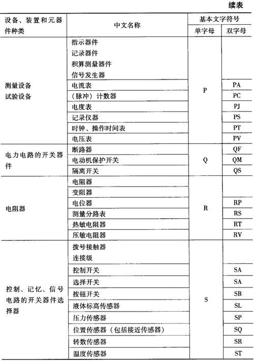 释义 | 电气设备的文字符号 电气设备的基本文字符号见表14-2。电气设备的常用辅助文字符号见表14-3。 表14-2 电气设备的基本文字符号 (GB 7159-87) 表14-3 电气设备的常用辅助文字符号 (GB 7159-87) |
