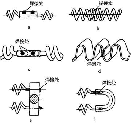 释义 | 电热元件的焊接与连接方法 1.电热元件的焊接方法 铁-铬-铝合金是属于铁素体的单相合金,焊接时焊接部分晶粒容易长大,因而塑性降低,容易脆断。合金如用作电热元件,其焊接处应能承受安装时的外力而不折断。焊接的方法有多种,如气焊、保护气体焊、电弧焊、点焊等。下面仅介绍常用的电弧焊法。 电弧焊比气焊好,而电弧焊接中以直流为佳,它可以得到均匀的电弧。电焊条最好采用铁-铬-铝焊条,也可以用石墨焊条,用石墨焊条时焊条先用砂轮磨尖,焊接时不用溶剂。无上述焊条时,可用高温不锈钢焊条(如1Cr18Ni9)。焊条焊接处最好在680~750℃下进行消除内应力退火(用各种方法将焊接处烧红10min左右即可)。电流数值可参考表10-32。 表10-32 根据不同材料尺寸应用的电流数值 (1)引出棒(或带)与电热元件的焊接:为了降低电热元件引出炉外一端的温度,以利于与电源连接,通常采用较大截面积的(一般应在三倍以上)引出棒或引出带,材料可以采用铁-铬-铝、镍-铬或镍-铬-铁、1Cr18Ni9不锈钢等。其常用焊接方法如图10-8~图10-13。 图10-8 引出棒钻中心后焊接法 (Φ2mm以上电热丝适用) 图10-9 引出棒开槽与电热元件带材焊接法 图10-10 电热元件带材与引出棒的焊接方法 图10-11 电热元件带材与引出带的焊接方法 图10-12 电热丝与引出带的焊接方法 图10-13 电热丝与引出带的焊接方法 (2)电热元件间的焊接:在巨型电炉中,往往需用很长的电热元件,元件单根的重量超过标准重量,或者超过制造厂可能制造的长度,则需要焊接。在焊接处应该具有与元件本身同样的热稳定性,因此焊接处与其他部分的尺寸力求一致,这在实际施工上是困难的。我们应该尽量避免焊接,或者选用适当的形式来避免接合处过热,使用适当的形状降低它的表面负荷。几种常用的焊接办法如图10-14所示。 图10-14 电热元件的焊接法 (3)电热元件修理时的焊接法: ①未用过的元件:线状元件若在搬运、安装中发生断裂时,可将断头处在700~800℃时加热校直,然后用图10-14所示的方法焊接。带状元件断裂时,也可以将断头处先加热到700~800℃,校直3倍宽度,将同样尺寸的带材用钳子夹紧进行焊接。 ②已经高温用过的元件:方法与未用过的相同。应特别注意的是铁-铬-铝合金使用过后塑性很低,不可用力拉伸或重绕,最好在炉内焊接。 2.电热元件连接方法(供电电压)的选择 常用的电阻炉、小功率(5~10kW)电热设备都使用单相220V或380V,对于温度较低的电炉也可设计成三相380V;大于10kW的电热元件一般均采用三相380V。 每组加热元件以30~60kW为宜,即每相10~20kW(相应的电热元件直径为4~6mm),在设计时可根据总功率,用几组并联方式来达到上述参数。 一般连接方式可参阅表10-33。 表10-33 电热元件连接方式 |