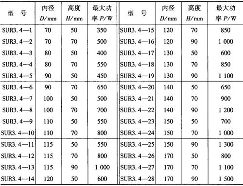 释义 | 电热圈 电热圈用于塑料机械、挤出机及管道加热,外壳为金属板材,发热材料为镍铬或铁铬铝电热合金材料,用云母片做绝缘骨架。有圆形、半圆形、弧形、平面及异形等多种。其中的一种电热圈型号组成如下: 电热圈的外形见图10-5,规格及技术参数见表10-21和表10-22。 图10-5 电热圈的结构图 1.紧固螺钉 2.接线螺钉 3.外层金属包壳 4.电热丝 5.云母片 6.内层金属包壳 表10-21 单包壳电热圈的规格及技术参数 表10-22 双包壳电热圈的规格及技术参数 |