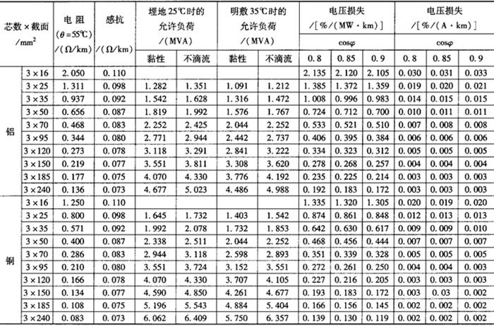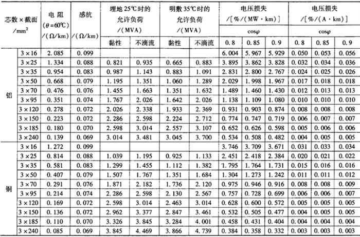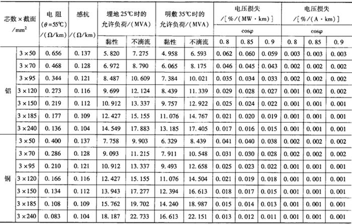表12-52 6kV油浸纸绝缘电力电缆的电压损失