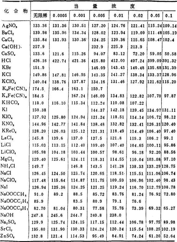 电解质在水溶液中的当量电导(25℃)