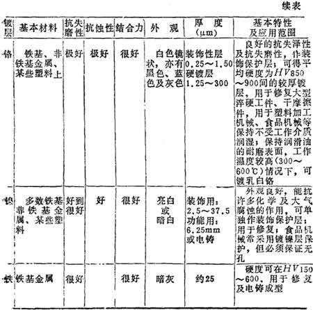 释义 | 电镀 1.常用镀层的特性及应用范围(表14-95) 表14-95 常用镀层的特性及应用范围 2.镀后处理 镀后处理包括清洗、回收、去氢、钝化等。 1)去氢 电镀过程中氢原子能进入镀层或基体金属晶格内,造成基体金属和镀层的氢脆、起泡和针孔等。不同金属材料对氢脆的敏感性是不同的,高强度及弹性零件对氢脆最为敏感,因此这些零件必须在镀后进行去氢处理。一般采用热处理方法去氢,即在烘箱或油槽中保持一定的温度和时间,将氢从零件内驱出。一般温度控制在180~200℃范围内,时间2~4小时。对不能加热到180~200℃的零件(如锡焊件及渗碳件),可以用较低的去氢温度(140~160℃),但时间要适当延长。对铜及铜合金可不进行去氢处理。 2)钝化 对锌、镉、铜、银等金属镀层,在含有强氧化剂(如酪酐)的溶液中进行化学或电化学处理,使表面生成一层层组织致密的薄膜过程,叫做钝化过程。其目的是提高镀层的抗腐蚀能力及零件表面的装饰效果。 (1)镀锌和镉的钝化处理。常用的钝化溶液配方及工艺规程见表14-96。 表14-96 钝化溶液配方及工艺参数 (2)镀铜层钝化处理。其目的是防止镀铜层氧化变色,适用于镀铜后不再覆盖其他镀层或只在镀铜后进行有机涂膜处理的零件。镀铜层的钝化处理有化学法及电化学法。 化学法——把镀铜零件放在酪酐(80~100g/1)、硫酸(25~35g/1)、氯化钠(105~2g/1)的溶液中浸泡2~3min后取出洗净和烘干。 电化学法——在重酪酸钠(70~80g/1)用水醋酸调整pH值为2.5~3的溶液中,在室温的条件下,用0.1~0.2A/dm2的电流密度把零件放在阴极上处理2~3s后,取出洗净和烘干。 3.电镀零件的工艺性 (1)边缘处要圆角,其半径一般以1.6mm为宜。 (2)凹陷的深度越小越好,要防止深度大于宽度的50%。 (3)尽量减少盲孔,其深度必须在其宽度的50%以内,直径不小于6mm。 (4)带螺纹的孔需加埋头,以利于镀后紧固。 (5)紧固用的整体螺栓,越短越好,根部及底部需有圆角。螺栓上如为普通螺纹,则在有效面上的镀层厚度,应当在5~7.5μm之间。 (6)零件上环形轮廓处,要预留镀液排放孔。 |