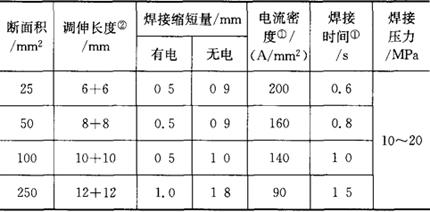 释义 | 电阻对焊 电阻对焊是将焊件装配成对接接头,使其端面紧密接触,接通电流,利用电阻热加热至塑性状态,然后迅速加顶锻力来完成焊接的方法。电阻对焊时,对焊件端面的准备工作要求较高,其焊接截面一般<250mm2,形状紧凑、氧化物易于挤出的焊件。 焊接参数主要有:焊接电流(碳钢电流密度一般取9000~70000A/cm2);焊接时间(碳钢一般取0.02~3s);焊接压力(碳钢取10~30MPa,有色金属取3~45MPa);调伸长度(单边伸出长度取0.6~2倍直径)。低碳钢棒材电阻对焊的焊接参数见表4.5-1。 表4.5-1 低碳钢棒材电阻对焊的焊接参数 注:①焊接淬火钢时,增加20%~30%。 ②对于淬火钢增加100%。 |