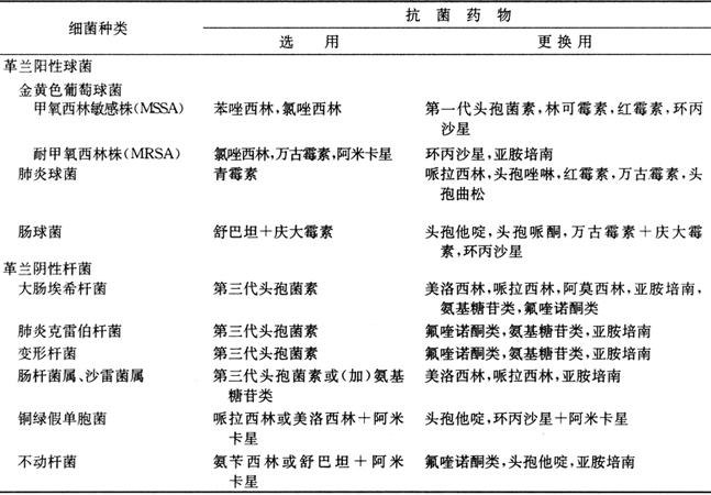 释义 | 病原治疗 【释文】: 鉴别病原菌及对抗菌药敏感性测定是治疗败血症的基础,合理选用敏感抗菌药是治疗的关键。抗菌药的应用原则为:“有效联合,杀菌制剂,静脉给药,剂量宜大,疗程宜长。” 1.病原菌不明时的经验性抗菌治疗应根据临床资料估计可能的病原菌,选用较合理的治疗方案,兼顾革兰阳性菌和阴性菌,覆盖性杀灭病原体。可先用广谱抗生素,一般选用抗假单胞菌青霉素(如哌拉西林、替卡西林)或第3、第4代头孢菌素联合氨基糖苷类抗生素。也可选用氟喹诺酮类或头孢类单用。下列临床特点可供选择抗菌药时参考。 (1)病前体健的男性青年,原发炎症病灶为皮肤疖肿,发病后有皮疹、迁徙病灶,金葡菌败血症的可能性大。 (2)体内留置异物,如人工瓣膜、人工关节、各种导管或起搏器等,发生医院内感染,应考虑表葡菌败血症。 (3)免疫功能低下者的院内感染也常由金葡菌及假单胞菌属引起,可选用万古霉素与头孢他啶联合。如细菌自泌尿生殖道、肠道、胆道入侵,发病后休克、低蛋白血症;致病菌常为革兰阴性杆菌。 (4)长期使用糖皮质激素、广谱抗生素、化疗、胃肠外营养、血液透析的免疫低下病人院内感染,还应考虑真菌致病的可能。 (5)自胃肠道、女性生殖道、褥疮溃疡等入侵的感染,发病后合并高胆红素血症、血栓性静脉炎、迁徙性脓肿及肺炎等,应警惕厌氧菌感染。 (6)因输液液体或留置管污染引起的败血症常为肺炎克雷伯杆菌、凝团肠杆菌等所致。高能营养液易为真菌污染。血污染常由大肠埃希杆菌、铜绿假单胞菌引起。 (7)烧伤病人发生的败血症,早期多为单一细菌,晚期常为混合感染,金葡菌、铜绿假单胞菌、变形杆菌、大肠埃希杆菌均常见。白血病病人易发生由耐药葡萄球菌、铜绿假单胞菌及革兰阴性杆菌等引起的败血症。 2.明确病原菌药敏结果未知时的抗菌药选择除考虑有效外,还应选择费用低、不良反应少的药物。目前金葡菌对青霉素普遍耐药(95%以上),对苯唑西林、第一代头孢菌素(头孢噻吩、头孢唑啉)的耐药菌株日趋增多。首选苯唑西林或氯唑西林,也可用第一代头孢菌素,联合应用利福平。耐甲氧西林株(MRSA)可首选万古霉素与氨基糖苷类或利福平联合应用。革兰阴性杆菌对氯霉素、氨苄西林等普遍耐药;首选第3代头孢菌素及氟喹诺酮类,或哌拉西林与氨基糖苷类合用。厌氧菌和需氧菌组成的复数菌感染首选甲硝唑、克林霉素、氯霉素、第3代头孢菌素及氨基糖苷类等,严重复数菌感染可选用亚胺培南或亚胺培南-西司他丁钠(泰能)。真菌败血症首选二性霉素B或氟康唑。L型菌选用氯霉素、克林霉素、利福平、四环素及多黏菌素等。表21-5可供参考。 表21-5 常见败血症抗菌药物的选择 3.根据药敏试验选择敏感抗菌药 这才是真正合理的抗菌治疗。临床经验不能代替药敏试验。 |