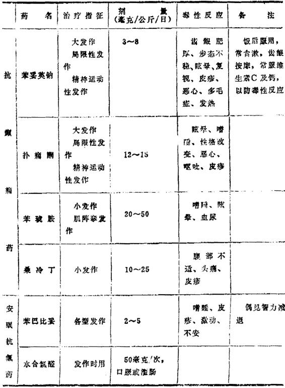 释义 | 癫痫 【病因】 癫痫是一种短暂的大脑功能失调现象,原因不明者称为特发性癫痫,继发于脑部器质性损伤的称继发性癫痫,多见于先天性脑发育不全,新生儿期有窒息、产伤、颅内出血史或有颅内疾患者,如肿瘤、血肿、脑寄生虫病。 【临床表现】 一、大发作:约占全部发作类型的70%。 (一)先兆期:发作前出现不同性质的特异感觉或表情,常双目定视或斜视,约历时1~2秒。同一患儿,每次发作先兆大多不变。 (二)强直期:患儿突然丧失意识而跌倒,因喉及膈肌痉挛,可发生怪叫声,全身痉挛,呼吸暂停,双手握拳,面色青紫,眼球上翻,瞳孔散大,约持续数秒至半分钟。 (三)痉挛期:肢体及躯干反复抽动,咬舌,口吐白沫,呼吸不规则,大小便失禁约3~4分钟。 (四)发作后期:痉挛停止,患儿进入昏睡状态,数小时后觉醒,自感疲乏头痛,对发作情况不能记忆。 二、癫痫持续状态:大发作1次连续1次,且两次发作之间歇期仍有神智障碍,称为癫痫持续状态,多见于突然停药或更换抗癫痫药后,或有癫痫病者又得其他疾病,和继发性癫痫者。 三、小发作: (一)失神性小发作:多见于学龄儿童,表现一时神智丧失,在某一姿态下突然两眼凝视,一般约20秒即恢复正常。 (二)肌阵挛性小发作:多见于婴幼儿,表现有急骤的点头数下,两臂同时向外伸展,每次发作数秒即过。 四、精神性发作:患者先有恶心、呕吐或上腹部不适感,以后有短时间的肌张力增强,肢体出现无目的的动作,且失去记忆力,发作之间小儿常表现过度兴奋及行为异常。 五、局部发作: (一)局限性运动型:痉挛起始于身体的局部,而后延及邻近肌群,最后波及全身。此型特点是不经过强直性痉挛,直接进入阵阵抽动。 (二)局限性感觉型:发作时一侧肢体呈麻木感、针刺感或该肢体突然消失感,可作各种型式的扩散。 (三)局限内脏型:只有内脏功能紊乱,脑电图常可见典型的脑电波改变。小发作病例,可出现每秒3次的两侧对称的高振幅的棘波,大发作可见多发的高振幅的棘波或各种异形波。但应注意正常小儿也可偶现异常脑电波,癫痫者有时也可看不到异常波形。 【诊断与鉴别诊断】 根据临床表现即可诊断。必要时可作腰椎穿刺、硬脑膜下穿刺、X线颅骨摄片、氧脑、脑室及脑血管造影等,以明确诊断。个别病例可测血糖、非蛋白氮及血钙等,以与代谢紊乱引起的惊厥相鉴别。 【预防】 作好产前检查,及时处理难产,避免新生儿窒息,作好婴幼及儿童保健,增加体质,预防各种传染病,尤其是预防中枢神经系统的传染病。 【治疗】 一、一般疗法:作好病儿生活安排及思想工作,尽量使生活有规律,但要避免精神紧张及过度疲劳,鼓励患儿保持乐观情绪,坚持长期治疗,避免饮水过多,禁用兴奋性饮料,如茶、咖啡等,可给低盐、低脂肪饮食。 二、中药治疗:可用炒枣仁12克、远志9克、青果9克、磁石12克、石 三、发作时处理:避免外伤,立即将软而有弹性的东西垫于上下齿之间,以免咬破舌头。发作不能自停时,可给鲁米那注射或水化氯醛灌肠,仍不能控制者可用安密妥钠止痉,除用镇静剂外,可应用氧气吸入,持续性癫痫状态,有脑水肿者,可用脱水剂,也可用针灸推拿止痉。 四、控制发作:控制癫痫的药物可根据癫痫的发作类型、药物副作用小等,结合具体情况慎重选用。一般对大发作,应首选苯妥英钠10毫克/公斤/日,分3次口服,此药需服5~6天才发生作用。如仅于夜间、黎明时发作,可于睡前服用1次,一种药物不能控制者,可合并用苯巴比妥3毫克/公斤/次,每日2次,若仍无效,可改用它药,如扑痫酮等,见效后才能试行逐渐撤除原所用之药。药量一般由最小有效量开始,经过1~2周试服后,逐渐增加剂量,若仅1次大发作,且不伴有神经系统病理体征,应继续观察,待以后再有发作时再用药。出现毒性反应或其他副作用时,应逐渐减药量,并以他种抗癫痫药代替,非万不得已,不要突然停药。如须突然停药时,应以快速安眠药补充,以防诱发癫痫持续状态。在药物治疗达到有效控制2~3年后,可逐月式行减量服药。整个减药过程约需1年左右,经过1年来的观察,才可决定是否全部停药。 癫痫常用药物表 五、预防发作:除去已知诱因。有感染者可用抗菌素,如有脑部损伤,可考虑手术,无脑实质损害的病儿,必须以药物预防发作。 |