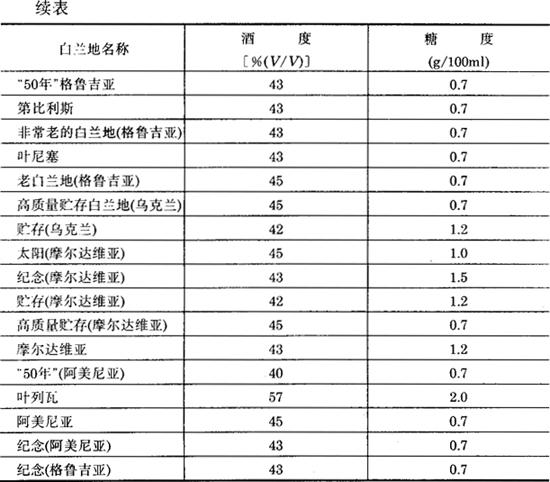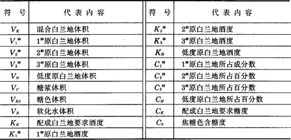根据前苏联的资料介绍,制造普通白兰地所用的原白兰地贮存3~5年。如“三星牌”白兰地所用的原白兰地贮存不少于3年;“四星牌”白兰地所用的原白兰地不少于4年;“五星牌”白兰地所用的原白兰地贮存不少于5年。 名牌白兰地或贮存白兰地是用6年至10年的原白兰地配成的。 同样的原白兰地贮存的期限,决定白兰地的称号和质量。贮存的期限越长,白兰地的质量越好,等级也越高。法国政府有关部门规定,从葡萄收获加工成白兰地原料葡萄酒到第二年的3月31日,为原白兰地正常的蒸馏期。从第二年的4月1日起计算白兰地的贮存时间。即从第二年的4月1日到第三年的3月31日,为第一年的贮存期。从第三年的4月1日到第四年的3月31日为第二年的贮存期,依此类推。 法国科涅克白兰地分为以下几个等级: (1)V.S.又叫三星白兰地。 (2)V.O.,V.OP.,V.S.O.P.为多年贮存的白兰地。 (3)X.O.,Extra,Napoleon为时间很老的陈年白兰地。 法国法令规定,三星白兰地贮存期在3年以上。V.O.,V.OP.,V.S.O.P.,必须使用贮存期5年以上的原白兰地调配。V.S.O.P.白兰地的平均酒龄一般在7~10年,它已具有较好的葡萄品种香、酒香和橡木桶陈酿香的特征。X.O.,Extra,Napoleon等,酒龄更长,必须使用10年以上的原白兰地调配,平均酒龄在15~25年。法国政府只是对科涅克的分级标志作了大概的分类,规定了最低的贮存年限。不同的酒厂对产品分类标志和年限规定不完全相同,并多使用自己的牌子和分类标志。 白兰地生产时,除了几种不同质量,不同酒龄,不同度数的原白兰地互相勾兑以外,还要根据配制白兰地要求,调入一定数量糖浆、糖色,并调入一定数量软化水,使白兰地调到需要的度数。前苏联生产白兰地时,还勾兑入一定比例的低度原白兰地。低度原白兰地一般酒精含量在20~25%(V/V),是由平均酒龄符合该牌子白兰地要求的原白兰地,用软化水冲淡后,在橡木桶里贮存60~70天即成。 当需要配制的白兰地体积已定,酒度已定,所用几种原白兰地的酒度和百分比也已确定,并且给定了配成白兰地要求的糖度时,即可进行配酒计算。 为了叙述方便,给定条件的符号及其所代表的内容如表5-3-19所示。 表5-3-19 白兰地计算常用符号及代表内容 如果要混合10000L42度的白兰地,要求糖度1.2g/100ml(用100g/ml的糖浆调糖)。小型试验确定,需要糖色40L,糖色的糖度是35g/100ml。已知1#原白兰地为65度,2#原白兰地为70度,3#原白兰地为60度,低度原白兰地为20度。通过小型试验确定的最好勾兑比例是:1#原白兰地占10%,2#原白兰地占75%,3#原白兰地占5%,低度原白兰地占10%。计算1#、2#、3#及低度原白兰地各需多少升,并算出需要添加的糖浆及软化水体积。 计算方法如下: 1#原白兰地体积数: 2#原白兰地体积数: 3#原白兰地体积数: 低度原白兰地体积数: 添加糖浆的体积数: Vc=VK·CK-VK0·C0=10000×1.2%-40×35%=106L 需添加软化水体积: VR=VK-V1#-V2#-V3#-VH-VC-VK0 =10000-646-4500-350-2100-106-40=2258L 不同的白兰地糖度和酒度也不同。前苏联生产的白兰地一般含酒精度为40~45度,含糖0.7~1.5g/100mL,如表5-3-20所示。 表5-3-20 前苏联几种牌号白兰地的酒度和糖度 白兰地仅仅靠勾兑是不行的,还需进行必要的调配。白兰地香味不足,要适当地调香。白兰地口味不醇厚,可以适当地调糖。白兰地的颜色不深,可用焦糖色来调整。 糖色质量的好坏,对白兰地的质量有着非常重要的影响。糖色的质量,主要是检查糖色的稳定性和染色能力,如表5-3-21所示。 表5-3-21 糖色质量的检查 |