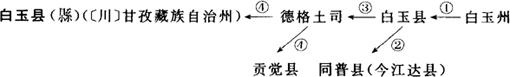 ①1912年称白玉州;1913年改为白玉县。②1912~1918年期间,白玉县所属波罗划归同普县(今江达县的波罗区)。③1918年川藏边务之争的“民七事件”发生后,白玉县划归西藏管辖,历时14年。期间,德格土司复辟,白玉县沦为德格土司的辖地。④1932年10月川藏在岗拖订立了《岗拖和约》,确定以金沙江为界,江西的昌洛、习西、克弱、胆巴等村划归贡觉县。江东的色巴、巴巴、劣巴等村划入白玉县。
