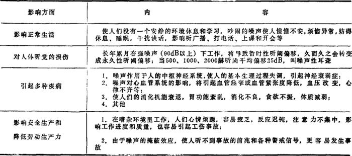 按照声源的不同,噪声主要分为:空气动力性噪声、机械性噪声和电磁性噪声。噪声的危害见表3-7-43。