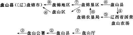 ①1912年称盘山厅;1913年改为盘山县。②1931年盘山县改设盘山公署。③1945年光复后恢复盘山县。④1953年划盘山南部为辽西省国营盘山农场。⑤1958年改国营盘山农场为盘锦农垦局,直属辽宁省。⑥1966年盘锦农垦局与盘山县合并为盘锦垦区,属辽宁省。⑦1970年盘锦垦区改为盘锦地区,原盘山县改为盘山区。⑧1976年撤销盘锦地区,盘山区复称盘山县。