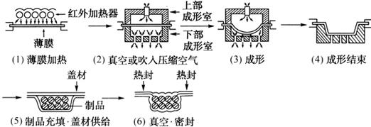 释义 | 真空包装机 根据包装形式的不同,真空包装机又分为袋包装机、深拉包装机和贴体包装机三种。机型虽然不同,工作原理却基本一致:在密封室内排除包装内的空气,使包装在正常大气压下容积收缩,保证包装物具有一定的真空度。 (一)袋包装机 袋包装机是指把制品装入袋状的包装物中,在真空室内抽去空气后进行热封的装置。使用较为广泛的是间歇式真空包装机,也有真空室配备传送带的可移动式和双真空室回转移动连续式真空包装机。 (二)深拉包装机 深拉包装机是用成形模具把加热后的薄膜冲成容器的形状进行真空包装的一种包装机。其包装工艺流程如图3-4-11所示。 图3-4-11 深拉包装工艺流程图 表3-4-7所示为NEWPACK提供的各种型号的深拉包装机的技术参数。 表3-4-7NEWPACK深拉包装机技术参数 (三)贴体包装机 贴体包装机是利用制品本身形状确定包装外形,通过上下薄膜的热粘合作用达到包装目的的设备。该机包装的产品不会出现深拉包装那样的皱褶,真空度较高,且可以抑制产品出水,较其它包装方法保存效果好。 间歇式贴体包装机工作原理:真空室由上盖和底容器构成,上盖是可上下升降的热板,底容器也是可上下移动的工作台。工作时工作台带着装有制品的薄膜下降,同时在底容器的边上盖上薄膜。内部的热板下降,薄膜受热。同时在真空室内脱气,当薄膜接近热熔点时,上盖的热板退回原处。接着工作台又升到底容器边上,此时产品已被薄膜覆盖,然后恢复常压,薄膜一边被拉深,一边沿着制品密封。 (四)拉伸膜自动包装机 拉伸膜自动包装机是由传送链条夹子将下部塑料膜引入机身后,加热成型并进入装货槽。被包装物装入下部膜形成的包装空间后,即与上部薄膜同步向前运行进入真空槽。在抽真空的同时,完成上下膜的热封,从而实现真空制袋包装,随后完成包装物的双层脱机。整个操作过程中,机器均在严格的光电系统控制下。为包装后的分切,本机配有横向切割器和高速运转的圆形纵向分切刀。包装后的产品通过一个斜面滑道或传送带运出后即可装箱。 图3-4-12所示为全自动拉伸膜包装机外形及内部构造。 图3-4-12 全自动拉伸膜包装机及内部构造 1.技术参数(参考值) 成型方式及产量:1×2 840包/h 1×3 1260包/h 2×3 2520包/h 成型深度:20~60mm可调 内膜宽度:425mm 外膜宽度:404mm 有效放货区:1000mm(4区) 周期推进:250mm 效率:16kW 真空泵:40m3/h(热封状态) 压缩空气:700L/min(0.7MPa) 冷却水:200L/h(0.2MPa) 外形尺寸:3700mm×900mm×1850mm 2.工作原理 (1)底膜成型原理 如图3-4-13所示,底膜从薄膜卷筒托架被传送到加热成型区冲压成型之前,先通过接触式加热板对薄膜进行单面底部预热或双面夹层预热,使薄膜与加热板之间形成真空环境,确保了薄膜在深冲压成型中均匀拉伸。薄膜预热之后,可采用不同冲压成型方法使薄膜成型。如经过滤的压缩空气深冲压、真空深拉或用塞块成型方式在模具凹槽内进行等。 图3-4-13 底膜加热成型过程 (2)上下膜真空热封原理 上膜均匀覆盖在盛有产品的底膜上后,随即进行真空热封。工艺流程如图3-4-14和图3-4-15所示。 图3-4-14 热封室中抽真空过程 图3-4-15 上下膜热封过程 抽真空过程保证了包装空间有一定真空度。热封方式可根据产品需要选择,如周边密封和脉冲式密封。 (五)充气包装机 充气包装机是将包装袋内空气抽出后再充入CO2或氮气等惰性气体实现延长产品保质期目的的设备。根据气体的置换方法可将充气包装机分为两大类,即在大气中往包装袋中充入气体的灌入式包装机和先把包装袋抽成真空再充入气体的真空式包装机。 真空式气体可以充分置换,灌入式置换率仅有70%~90%,且不太稳定,保质效果也不理想。 从包装能力上比较,灌入式高达50~80包/min,而真空式仅有30~40包/min,所以,目前灌入式置换气体包装机较普遍。 DZQ400型多功能真空充气包装机是目前市场上最新研制的新产品,具有较好的市场前景。表3-4-8所示为其技术参数,仅供参考。 表3-4-8DZQ400型多功能真空充气包装机技术参数 |