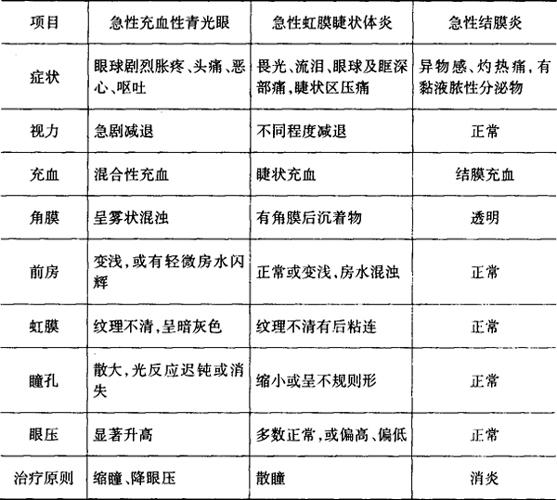 表3-3 急性充血性青光眼、急性虹膜状体炎、急性结膜炎鉴别表
