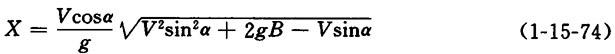 释义 | 着网点的计算 1、理论着网点的计算 【说明】 参见图1-15-11,着网点至下唇板边缘的水平距离(理论着网点),可按下式计算。 【公式】 式中 X——着网点至下唇板边缘的水平距离(m) B——下唇板边缘至网面高度(m) V——唇口的自由喷出速度(m/s),见式1-15-60 α——喷射线与水平线的夹角(度) α=β+γ β——喷射角,即喷射线与下唇板顶面的夹角(度) γ——下唇板顶面与水平线的夹角(度) g——重力加速度(9.81m/s2) 2.实际着网点的计算 【公式】 S=KX (1-15-75) 式中 S——实际着网点(m) K——系数,0.95~0.8 X——理论着网点(m),同式1-15-74 |