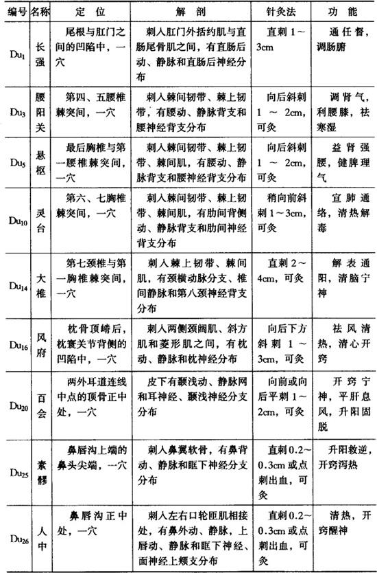 督脉、任脉穴位和经外奇穴