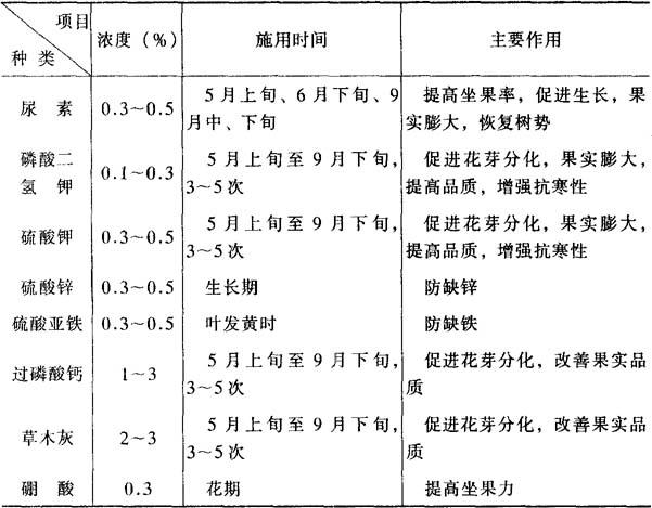释义 | 石榴施肥技术 (一)常用肥料的种类 石榴园常用的肥料大致可分为两类,即有机肥料和无机肥料。 1.有机肥料 是泛指含有机质的肥料的统称。它包括了人粪尿、牛厩肥、羊厩肥、猪厩肥、鸡粪等。有机肥属完全肥料,它不但含有植物生长所需的多种营养元素,而且含有丰富的有机质,它能较长时间稳定地供给树体生长发育对养分的需求(表7-3),并能有效地改良土壤。在石榴园,有机肥多在秋季作为基肥使用。 表7-3 主要肥料的肥效速度 有机肥虽有以上优点,但其养分含量低,肥效缓慢,不能满足树体不同发育阶段对某种养分的强烈要求。因此,在施肥上应以有机肥为基础,与无机肥料配合使用。 2.无机肥料 指不含有机物的肥料。多指用化学方法合成或经简单加工而成的肥料。按其所含的营养元素可分为以下几种: 氮肥:尿素、碳酸氢铵、硫酸铵、氯化铵、硝酸铵、液氨、氨水等。 磷肥:普通过磷酸钙、重过磷酸钙、钙镁磷肥、磷矿粉等。 钾肥:硫酸钾、氯化钾、窑灰钾、草木灰等。 复合肥:磷酸一铵、磷酸二铵、磷酸二氢钾、硝酸钾等。 微肥:硼砂、硫酸钾、硫酸镁、硫酸铜、硫酸钙、硫酸锰、硫酸亚铁、碳酸钙、钼酸氨等。 在深翻改土、秋施基肥时将过磷酸钙与圈肥、厩肥或饼肥混合,能保持和提高磷肥的有效性;将作物秸秆与碳酸氢铵混合施入地下;生长季内将碳酸氢铵与绿肥、青绿秆混合翻压,可加速有机物的腐烂和分解,并能增加土壤氮素水平。 (二)施肥时期 在石榴树生长的年周期中,不同的物候期其生长发育中心不同,因而对养分种类和数量的需求也不相同。 1.春季施肥 春季是石榴树体生长活动的重要时期,主要有根系活动、萌芽、展叶、抽枝、花芽继续分化、显蕾等。 春季的生长发育中心是以营养生长为主体的,这些新建器官又是当年生长发育的基础。因此,在需肥特点上,应以氮肥为主。在生长初期,主要是消耗上年贮藏营养,为保证营养供给的连续性,这次施肥应尽可能早施,以萌芽前追施为佳。在种类上以速效氮为主,每667米2可用碳酸氢铵60千克或尿素25千克。 2.夏季施肥 在夏季,石榴树将进行开花、坐果、果实发育和花芽分化等生命活动。这一阶段的中心是坐果。 在需肥特点上,以春季良好的营养生长为基础,氮、磷、钾、硼等配合使用。在氮的使用量上,应因树而定,灵活掌握,强树不施,中庸树适当施,弱树应多施。对中庸树,氮、磷、钾的用量一般控制在1∶0.5∶1之间。按一般速效肥被作物吸收利用的时间(7~10天),应尽可能在始花期以前施用;硼肥可在花期根外追肥,以提高坐果力。花后对老弱树应再补施氮、磷、钾肥,配合疏花定果,综合调节,以促进树势恢复;在砂质多石砾等不良的土壤条件下,应勤施、少施。夏季施肥的意义十分重大,一是要保证开花和坐果;二是供幼果发育;三是为该段后期的花芽分化打好基础。在施肥方式上,以土壤追肥为主,也可采用根外追肥。肥料品种,氮肥用碳酸氢铵、硫酸铵、尿素等;磷肥用过磷酸钙;钾肥用硫酸钾或草木灰,也可使用复合肥磷酸二铵、磷酸二氢钾等。 3.秋季施肥 秋季果实已近成熟,花芽分化还在继续,树体营养消耗很大。秋季施肥在采果前多以根外追肥为主,配合病虫害防治,喷施尿素(0.3%~0.5%)和磷酸二氢钾(0.3%),以促果膨大,增加色泽和含糖量;采后可再进行根外追肥,同时进行深翻施肥,基肥以有机肥为主,使用量较大(占全年施肥量的80%左右),在施用农家肥时,可混施少量速效氮。秋季光照充足、温度适宜、昼夜温差大,有利于营养物质的积累,所以,应配合秋季修剪等措施,增强光合效率,积累营养,促使树体充实健壮,保证安全越冬,为翌年的高产打好基础。 (三)石榴园施肥的方法 施肥的效果与施肥的方法有密切的关系,施肥的方法主要可分为两类:一是土壤施肥,二是根外追肥。 1.土壤施肥 土壤施肥的方法要与根系分布特点相适应。石榴属灌木树种,根系较乔木树种为浅。施肥时应将肥料施于根系分布密集区偏深的地方,可诱导根向深层生长,一般深度在30~80厘米之间。不同的肥料种类施肥的深度不同,有机肥可深施,无机肥则可浅施。在生产上具体应用时应区别对待,适度灵活,以能最大限度地达到目的为佳。常用的土壤施肥方法有: (1)环状施肥 幼树根系分布范围较小,多采用这一方法,此法操作简便,并较经济。缺点是环状开沟对水平根损伤较大,施肥面积较小。 (2)放射沟施肥 一般盛果期树多用此法,这种方法开沟时顺水平根生长的方向开挖,伤根较少,而且可隔年或隔次更换施肥部位,扩大施肥面积,促进根系吸收。 (3)条沟施肥 即在石榴树行间开沟,常结合石榴园秋季深翻进行。开沟时可视具体情况,每行或隔行深翻施肥。此法多用于幼园深翻和宽行密植园的秋季施肥时采用。 (4)穴状施肥 即在树冠垂直投影下,均匀挖穴状小坑,将肥料施入的施肥方法,它多在成龄园生长期追肥时采用。 (5)全园撒施 盛果期园内已郁闭,根已密布全园时采用此法。施肥面积大,石榴树吸收的面积也大,但不能连年使用,而应与深翻施肥相结合,交替使用。 2.根外追肥 根外追肥也叫叶面喷肥,在我国果区已广泛采用,并积累了不少经验。 叶面喷肥主要是通过叶片上的气孔和角质层进入叶片,而后运到树体内的各个器官,一般喷后15分钟到2小时即可被叶片吸收利用。在1个叶片上,叶背比叶面吸收得快;在1天里,以上午