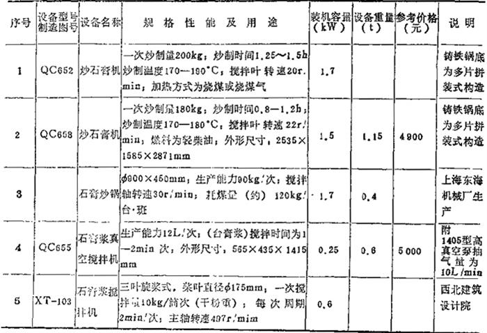 1.石膏模加工的主要设备技术规格,参见表2-34及表2-35。