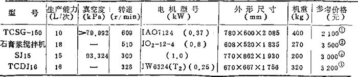注:①山东淄博陶瓷机械厂1980-1984年价格。②唐山轻工业机械厂1980-1984年价格。