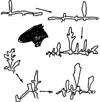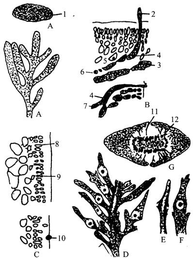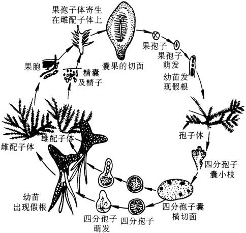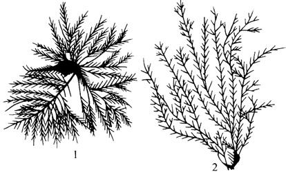 释义 | 石花菜的生物学 (一)石花菜的分类学地位与分布 石花菜属于红藻门(Rhodophyta),真红藻纲(Floridoeae),石花菜目(Gelidiales),石花菜科(Gelidiaceae),石花菜属(Gelidium)。 石花菜科种类繁多,有7属40种,产量较多且有经济价值的主要有石花菜属和鸡毛菜属。石花菜属种类在中国已发现10几种,多为中小型藻类。藻体较小的石花菜分布广泛但产量较低。其中藻体较大且适合中国开展大面积养殖的种类主要是石花菜和大石花菜。 石花菜为世界性海藻,分布十分广泛。中国的石花菜资源也相当丰富,主要分布于河北、辽宁、山东、江苏、浙江、福建、台湾等地,主要产地为山东和台湾。从垂直分布来看,石花菜为喜阴性植物,多生长于大干潮线以下至水深10米以下的水域,而且透明度大的海区分布较深,透明度小的海区则分布较浅。 (二)石花菜的形态构造 1.外部形态 石花菜颜色有紫红、深红或绛紫色,在受光多的海区生长的往往呈淡黄色。新鲜的石花菜藻体为直立丛生,羽状分枝互生或对生,枝呈扁平或亚圆柱形。藻体分枝很多,主枝生侧枝,侧枝上生小枝,各种分枝的末端尖,枝宽0.5~2毫米。整个藻体上部分枝较密,下部分枝略微稀疏。固着器为假根状,假根一般呈黑色。藻体的大小因种类和生活环境不同差别很大,小的只有1~1.5厘米或2~4厘米,一般为10~20厘米,大的可达30~40厘米(图6-20)。 图6-20 石花菜的外部形态 1.石花菜 2.大石花菜 2.内部构造 表面被有厚膜,细胞内有色素体,此即为表皮层,是进行光合作用的主要场所。 在石花菜藻体幼小时,很明显有一条中轴,髓部细胞由此分枝出来。因此,石花菜属于中轴系组织的藻类,髓部长柱形,细胞间有相当多的空隙,空隙间充满了胶质,因而形成了紧密的组织,体内的琼胶多储存于髓部。老成藻体的髓部中有无数纤维状细胞纵行贯穿在胶质中,增加了石花菜组织的坚韧度。 石花菜的生长属于顶端生长,它的每一个分枝的顶端,都有一个顶端细胞。藻体分枝的生长就是通过顶端细胞的分裂并分化而进行的。顶端细胞首先分生成中轴丝细胞,同时在顶端细胞后的一二个细胞,它们经过分裂而产生4个围轴细胞。这些围轴细胞呈四方形排列在母细胞周围,并经过不断分裂和分化形成皮层及髓部组织,藻体基部的皮层再分裂形成假根,假根丝平行于中轴丝。 (三)石花菜的繁殖 石花菜的繁殖分为有性生殖和无性繁殖两种,有性生殖是通过雌雄配子体成熟后,果胞受精形成果孢子体,果孢子体成熟后产生果孢子而进行的;无性繁殖则是通过四分孢子体产生四分孢子而进行的。这两种繁殖形式最终都是以孢子进行的,故称为孢子繁殖。此外,石花菜还可以进行特殊的营养繁殖,分为匍匐枝繁殖、假根繁殖和藻体再生3种形式。 1.孢子繁殖 石花菜的生活史中,除孢子体世代和配子体世代外,还有果孢子体世代。但果孢子体不能单独存在,仅能在雌配子体上形成并生长、发育。在非繁殖季节,雌雄配子体和四分孢子体三者之间是不易区别的,我们通常见到的石花菜这三种藻体都有,只有到了繁殖季节,藻体上产生生殖器官后,才能将它们区别开来。 2.雌雄配子体 (1)雄配子体 雄配子体成熟后,在扁平的精子囊小枝的顶端群生着椭圆形的精子囊,它是由藻体表面细胞转化为精子囊母细胞,精子囊母细胞经过分裂而形成的。每个精子囊母细胞产生两个精子囊。精子为无色圆形,无鞭毛,不能游动,依靠海水的流动被带到雌配子体果胞的受精丝上受精。 (2)雌配子体 雌配子体近成熟时,要产生专门产生果孢子的果胞小枝,它是由主枝顶端的小枝产生的,少数在主枝的顶端直接形成。成熟时,由果胞小枝主轴细胞的两侧,各自分割出围轴细胞,由第三或第四行围轴细胞产生支持细胞与果胞母细胞,果胞母细胞(顶上的细胞)经变态而转化为果胞。果胞上具有一条棒状的受精丝伸出于藻体的表面,而果胞的下面是一个支持细胞。因此,果胞枝由单个的细胞组成。在果胞枝的发育过程中,第二行围轴细胞的基部产生数行小细胞,而每个细胞内部含有丰富的原生质,称为营养细胞或滋养细胞,其作用是为囊果的发育提供营养。 3.果孢子体 果胞形成之后,碰到精子,精子便粘附在受精丝上,其接触处融化,精核则沿着受精丝进入果胞基部,与卵核结合形成合子,合子不离开母体。受精后,果胞便与下面的支持细胞融合,形成很大的融合胞。融合胞产生许多分枝的产孢丝,穿入营养组织的细胞间吸收营养。成熟的产孢丝,末端的细胞伸长,而分裂成果孢子囊。在融合胞产生产孢丝的同时,产孢丝外面的皮层进一步发育隆起,在藻体上形成一个膨大部分,称为果孢子体或囊果。在横切面观察,膨大部分为两个不完全分离的小室,室顶各有一孔与外界相通,此孔称为囊果孔,成熟的果孢子即从囊果孔排出体外。果孢子排出后,便随水散布漂流,碰到合适的基质,便附着萌发成四分孢子体。 4.四分孢子体 四分孢子体成熟后,在其分枝的顶端形成膨大卵形的四分孢子囊枝,四分孢囊由小分枝的表面细胞形成。成熟时,由于邻近的营养细胞向上生长,结果使四分孢子囊逐渐被埋于藻体细胞中。每个四分孢子囊母细胞经过减数分裂形成4个四分孢子,四分孢子在四分孢子囊中呈“十”字形排列。四分孢子囊成熟后,从藻体表面观察为紫红色的小斑点,稍微突起,并沿着小枝扁的一侧排列。 四分孢子成熟后,孢子囊壁破裂,其中的孢