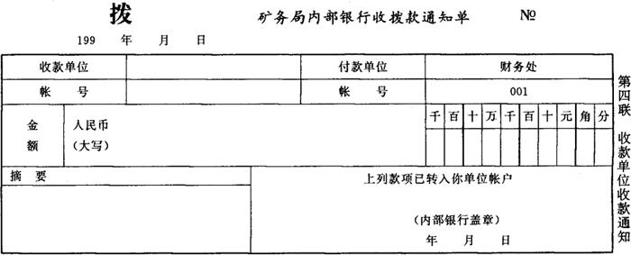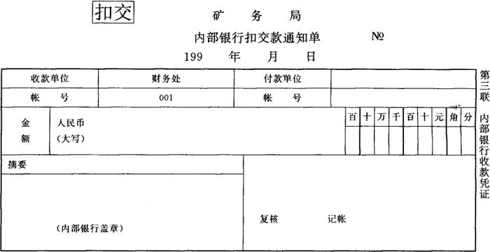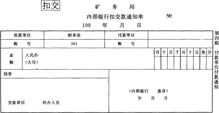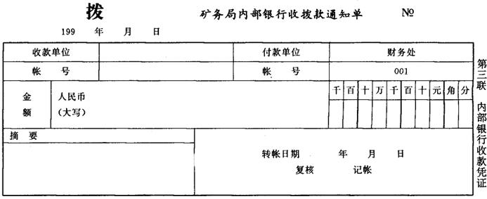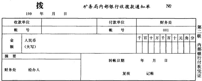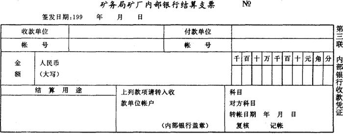 第一章 总则 第一条 根据国家体改委1988年深化经济体制改革总体方案中提出的推广内部银行的要求,为在煤炭企业全面实行内部银行制度,以不断深化企业改革,更好地为煤矿投入产出总承包服务,特制定本办法。 第二条 矿务局内部银行,是引入银行信贷、结算的机制对煤炭企业内部资金占用、使用、回收和分配进行组织、协调、监督和控制,以融通资金,减少资金占用,加速资金周转,提高经济效益并完善承包经营责任制的一种管理方法。 第三条 根据国家批准的矿务局为独立经济核算单位、矿(厂)为内部核算单位的核算管理体制建立的矿务局内部银行,其主要任务是融通全局的流动资金和各种专项资金、办理企业内部一切经济往来的结算业务,但不改变承包经营责任制所确定的矿(厂)在资金管理方面的资金所有权和支配权,以保证各矿(厂)相对独立和自主经营。 第四条 矿务局内部银行是全局的信贷中心和结算中心,实行“统筹管理、有偿占用、存贷计息、讲求效益”的原则,以利于挖掘企业内部资金潜力,利用资金的时间差,发挥资金的整体效益;以利于运用价值规律处理企业内部各单位之间的经济关系,进一步增强商品观念、货币时间价值观念和效益观念,改变资金管理上的供给制,以利于加强全面经济核算,完善企业内部经营机制,提高企业经济效益。 第五条 实行矿务局内部银行制度,是财会工作改革的一个重要组成部分,推行内部银行制度要列为考核企业升级的内容之一,各单位要因地制宜,积极推广试行,已经建立但搞得不够全面的,要进行整顿提高,逐步加以完善。 第二章 职能与作用 第六条 结算职能。内部银行负责对局属各单位之间的产品、劳务收入,器材供应,资金调拨,往来清算等经济事项及时、准确地进行内部结算,以减少在途资金,及时下拨局属各单位发放工资,采购材料、设备等事项所需货币资金,保证生产经营活动的正常进行。 第七条 融通职能。集中和吸收局属各单位的货币资金,利用信贷杠杆进行内部资金融通,以尽量减少外部贷款,提高企业内部资金的使用效益。 第八条 监督与控制职能。内部银行按照国家有关方针、政策、法规、制度和核定的各项资金定额以及企业财务收支计划、对局属各单位的货币资金进行监督和控制,促使其有效地使用资金。 第九条 信息反馈职能。通过内部银行的核算资料,准确反映全局及局属各单位货币资金的收、支、余情况,加强信息反馈,及时为企业领导决策和调整信贷计划提供数据。 第三章 机构与人员 第十条 矿务局内部银行原则上应在财务处内部单独设置机构,也可与资金科(或生产财务科)合署办公,一套机构两个牌子。 第十一条 矿务局内部银行设行长一人,由财务处处长兼任,负责内部银行的全面工作,设副行长一人,由财务处分管副处长或资金科科长兼任,负责内部银行的具体业务工作;设专职(或兼职)核算员、结算员、信贷员若干人,负责办理内部银行的日常业务。 第四章 业务内容 第十二条 结算 (一)结算范围: 矿务局所属各矿、厂、部门和单位都要在矿务局内部银行开户,主要经济活动都必须通过内部银行进行结算,单位之间不得直接办理结算和现金交易。 (二)结算内容: 1.货款回收。凡经局统收货款的收入,财务处根据每日实际收入分单位及时通过内部银行填写收拨款通知单转入各单位帐户,各矿、厂收到收款通知后可直接作销售收入和收回垫付运杂费入帐。 供本局洗选厂入洗原煤的矿,赁发货票等有关凭证填制内部托收无承付结算凭证或托收承付结算凭证,通过内部银行办理结算。 2.核定调剂流动资金。 3.盈亏缴拨。根据核定的盈亏承包指标由内部银行定期办理缴拨手续。 4.经费下拨。每月根据财务处核定的包干定额,内部银行定期填写拨款通知单下拨各经费单位。 5.专用基金工程支出。根据有关部门规定的工程价款结算办法填写拨款通知单,通过内部银行下款。 6.有关生产需要的下拨款项。内部银行根据各单位月度财务收支计划,一律通过内部银行下拨。如:用于发放工资、奖金、备用金、管理费、自购料款等需要动用现金的,由用款单位填制内部银行兑换货币凭证,通过内部银行领取外部银行支票。 7.各矿(厂)到局供应公司领取材料需持内部银行支票办理结算。 8.各矿(厂)应上交局利润、税金等款项,应于每月底填写扣、交通知单送局内部银行办理结算,如有不交的由财务处代扣。 9.内部银行贷款,各矿(厂)、单位,向内部银行申请贷款时,应填写借款申请书和贷款借据,经内部银行审查报请领导批准后办理贷款手续。 10.电费、水费、每月由有关部门按实际耗用,定期通过内部银行向各单位办理内部托收无承付结算,需要对外支付供电局的电费由局统一支付。 第十三条 信贷与融通 (一)融通的资金来源,主要是局属各单位在内部银行的存款,内部银行利用各单位在资金使用上的时间差进行融通。内部银行存款分为活期存款与定期存款两种。 (二)内部银行要利用吸收的内部存款,以内部贷款的形式满足内部各单位对资金的需要。其贷款方式一般有以下四种: 1.定额贷款。根据局核定的流动资金定额扣除国拨流动资金部分的差额,可给予定额货款。定额贷款是保证各单位资金正常周转的一种正常贷款,利息率不宜过高。 2.结算贷款。指按局核定的结算资金定额向内部银行办理的