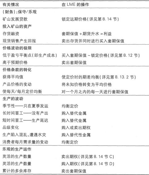 释义 | 矿山对远期生产的套期保值 矿山位于金属供给渠道的始端,其成本的构成是不同寻常的,这是因为它们的启动成本巨大,并且在新矿山形成采掘或发货能力之前,需要相当长的时间来筹备和建设。在投资者资本金到位、可行性研究、获得长期贷款、矿区的清理及生产所必需的基础设施建设等等一系列前期工作完成后,一旦开始运作,矿厂就会尽其所能进行生产。但矿厂也会在生产能力的限度内,对年产量进行调节,这种调节可以通过调整开采的生产效率(用开采数量来表示),或在理论上通过改变所开采矿石的品级来完成(尽管在实践中是不可能的),简言之,矿厂的做法令人费解,因为虽然它们可以灵活控制产量,但是却受到自身规模、前期筹备时间,以及能够维持生产的现金流和扩大再生产所需要的费用及信贷服务等方面需要的制约。它们有时被称为市场中最大的投机者,当然他们自己绝对不会承认,但在开始时,采矿公司要先投入小部分资产挖出矿坑,仅仅这项工程就需要数月才能完成,在此期间它们希望金属价格仍然维持足够高的水平从而来补偿其启动成本。这是一种投机行为还是一种投资决策呢?当然,像其他所有金属交易者或消费者一样,它们可以利用LME来保护自己,但问题是它们要防范的对象是什么呢?通常采矿企业希望以每年平均的金属价格销售,但是随之出现的各种情况会使其愿望落空。它们被视为LME的主要用户。下面列出了在情况适当时它们在LME所采取的一系列操作。 8.13.1 矿山——在有关情况下利用LME 上面列出的不同情况表明了通过利用LME和采用套期保值技巧可以防范不同的价格风险。其中一些操作意见仅供参考,而有些意见是相当明确的。今天,许多矿业公司,希望以年度平均价格销售金属,下例便表明了将不均衡的每月销售数量转变为每月平均销售数量的操作方式。 8.13.2 矿山生产的年度套期保值 目的 将不均衡的销售量转变为每月定价的数量相等。 假设条件 矿山希望在销售时,整体价格为年度平均价,因此每月需要定价的数量为11000公吨,但是每月的销售数量是变化不定的(如下所示)。 例 对例子的评述 为获取真正的平均值,一般消费者在定价操作时,在定价月内每天都会进行套期保值操作,以达到既定的目标。 |