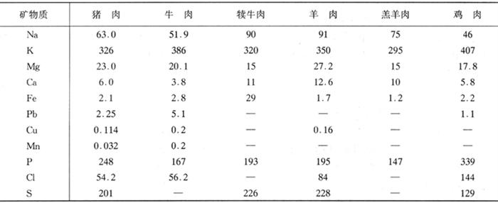 释义 | 矿物质 矿物质是指一些无机盐类和元素,含量占1.5%。这些无机物在肉中有的以单独游离状态存在,如镁离子、钙离子,有的以螯合状态存在,有的以与糖蛋白和酯结合方式存在,如硫、磷有机结合物。 肉是磷的良好来源。磷是骨和齿的主要成分,亦是核酸、辅酶Ⅰ和辅酶Ⅱ、维生素B12以及磷脂等的组成成分,并参与糖、脂类及氨基酸的代谢,调节酸碱平衡。 肉也是膳食铁的良好来源。铁是血红蛋白、肌红蛋白的组成成分,各种细胞色素、过氧化氢酶及多种氧化酶均含有铁,铁对呼吸作用及造血作用甚为重要,缺乏时可出现贫血。肉不仅本身铁含量多、吸收率高,而且肉和其它食品同时进食时可以促进其它非肉来源的铁的吸收。肝、肾和脾中的铁高达15~30mg/100g,因此是传统的补铁食品。 肉也是锌的理想来源。锌是维持皮肤、骨骼和毛发正常发育所必需的物质,它是与消化和呼吸有关的几种重要的酶系统的组成成分,也参与机体内重要的功能与代谢,与人的生长发育、创伤愈合和味觉的敏感度有关。瘦肉中锌的含量较高。 肉的钙含量较低,钾和钠几乎全部存在于软组织及体液中。在活体中,钾主要分布于细胞内,而钠则在细胞外。动物死后,则较均匀地分布在细胞内外。此外,肉中尚含有微量的锰、铜、铅、锌、镍等。 鲜肉中各种矿物质含量如表1-3-14所示。 表1-3-14 鲜肉中矿物质的含量 单位:mg/100g鲜样 |