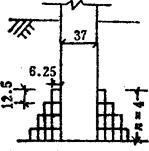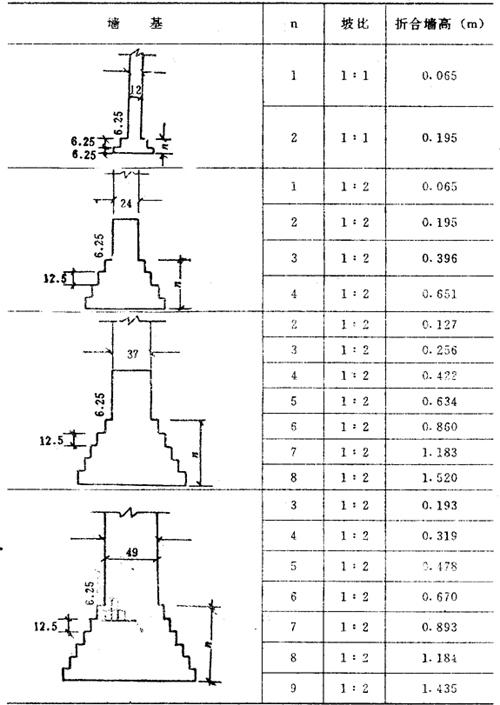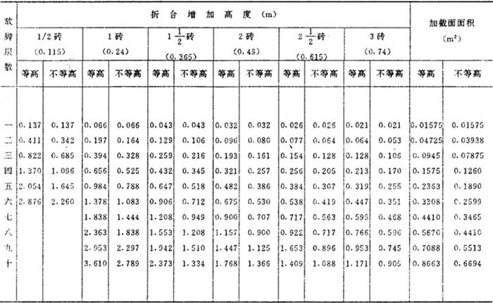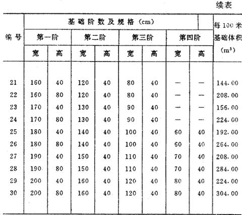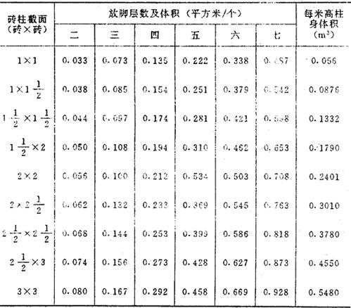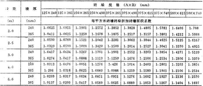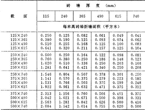 释义 | 砖石工程 砖石基础,按图示尺寸以立方米计算。砖石基础长度,外墙墙基按外墙中心线长度,内墙墙基按净长度计算。 ①毛石基础 毛石基础一般为带形,其计算公式为: V=(L中或L外)×基础截面面积(m3) 式中 V-体积(m3): L中-外墙中心线长度(m); L内-内墙净长线长度(m)。 〔计算例〕 某工程外墙中心线长度为300米,基础截面面积如图2-16所示,求毛石基础体积。 图2-16 解:V=L中×毛石基础截面面积 =300×(0.4×0.6+0.4×1+0.4×1.4) =300×1.20 =360m3 表2-8 毛石带形基础体积表 ②砖基础 砖基础大放脚计算 砖砌大放脚,一般系等高等宽的比例,逐步收进,如图2-17所示,其大放脚是一个等差级数,一般两皮一收,规定为0.0625米宽0.125米高;一皮一收的高宽均为0.0625米,所以可将此单位长方形面积,求出一个固定的数字。然后,再按级数公式所求出的两边块数相乘,即得其面积。 图2-17 [计算例] 如图2-17为370毫米墙身,大放脚四退收进系两皮一收,其计算方法如下: 解:①单位长方形面积: 表2-9 墙基折合墙高表 0.125×0.0625=0.0078m2 ②按级数公式求其两边单位长方形面积的块数; S=n(a+l)=4(1+4)=20 ③总面积 0.0078×20=0.156m2 ③折成加高计算 0.156÷0.37=0.422m a.砖基础折加高度计算法 计算公式为: V=L中(L内)×墙身宽度×(基本高度+折加高度) 〔计算例〕 某单位工程内墙基净长线为200米,墙身宽度为240毫米,砖基础为等高式三层大放脚,基本高度为1.50米,求砖基础工程量。 图2-18 ⑦=200×0.24×(1.50+0.394) =200×0.24×1.894 = *见折加高度和增加面积数据表(见表2-10)。 表2-10 折加高度和增加面积数据表 b.砖基础增加截面面积计算法 增加截面面积见表,其计算公式为: V=L中(L内)×(墙身宽度×基本高度+增加截面面积) [计算例] 仍以上题为例计算砖基础工程量。 =200×0.4545 =90.90m3 *见折加高度和增加面积数据表(见表2-10)。 ③砖墙 在计算工程量时,标准砖墙体厚度,按表2-11规定计算。 表2-11 标准砖墙体厚度表 ④内外山墙平均高度计算 图2-19 ⑤附墙砖垛 附墙砖垛按砖垛实体积,以立方米为单位计算,然后并入砖垛所依附的墙身工程量中去。也可以将垛凸出墙面部分的截面面积按垛所依附的墙宽折加墙长,计入墙体长度中,按砖墙工程量计算方法计算。砖垛折合砖墙面积见表2-12。 表2-12 附有单面砖垛的砖墙折加砖墙面积系数表 注:计算公式 ⑥砖平碹、钢筋砖过梁 砖平碹、钢筋砖过梁,均按图示尺寸以立方米计算,如设计无规定时,钢筋砖过梁长度按门窗洞宽度两端共加50厘米,高度44厘米计算。砖平碹长度,可按门窗洞口宽度两端共加10厘米,高度按24厘米计算,其计算公式为; 砖平碹=(门窗洞口+0.10)×0.24(高)×B 钢筋砖过梁=(门窗洞口+0.50)×0.44(高)×B 砖垛折合砖墙面积表 式中 B-为墙厚。 ⑦砖柱 砖柱不分柱身和柱基,其工程量合并计算。其计算公式为: 砖柱体积=柱身体积+柱基体积 说明:砖柱形式分为方形、圆形、多边形砖柱,其截面面积见下列公式。 a.矩形及方形 矩形A=a×b 方形A=a2 式中 A-截面面积; a-边长; b-边宽。 b.圆形 A=0.7854×D2 式中 D-圆柱直径 c.多边形(见图2-20) 图2-20 式中 n-边数;a-边长;r-内切圆半径。 表2-13 常用标准砖柱大放脚四周体积及柱身体积表 注:(1)本表放脚层数及体积系指砖柱四周大放脚体积,砖柱本身体积按每米柱身体积计算。 (2)本表按标准砖四面数放脚,每层等高126毫米,砌出宽度62.5毫米计算。 ⑧砖拱 普通砖拱按体积计算,计算公式为: V=d×l×L×K(m3) (见图2-21) 图2-21 式中 V-砖拱体积(m); d-拱厚; l-拱长; L-中心跨距; K-系数(见表2-14) 表2-14 矢高(f)与中心线跨距(L)的比值表 |