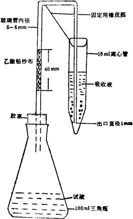 释义 | 砷离子的测定 (一)光度法 1.原理 在酸性条件中,碘化钾、氯化亚锡存在下,加入金属锌将样品中As(V)还原为As(Ⅲ),继续还原为AsH3,用二乙基二硫代氨基甲酸银溶液吸收,生成红色络合物,用光度法测定。 2.适用范围 食用盐、工业盐。 3.测定手续 (1)标准曲线 吸取0、1.00、2.00、3.00、4.00、5.00、7.00ml砷标准溶液(0.001mg/ml,表7-1-17),于砷化氢发生器内,加5g氯化钠,35ml水,溶解后加8ml(1∶1)硫酸,5ml 20%碘化钾,放置3min,加1ml 20%氯化亚锡,加水至60ml,混匀,静置15min后,加4g锌粒,立即将盛有5.00ml二乙基二硫代氨基甲酸银溶液的吸收管与砷化氢发生器连接塞紧,在室温下(20~25℃)反应1h,取下吸收管,将吸收液转入10mm比色池,在530nm处,水作对照测定吸光度,绘制标准曲线。 (2)样品测定 称取5.0g样品于砷化氢发生器内,加35ml水,以下手续同标准曲线,测得吸光度从标准曲线查出砷离子量,计算样品中含量。 注:(1)二乙基二硫代氨基甲酸银溶液称取0.2g研细的二乙基二硫代氨基甲酸银,加100ml 3%三乙醇胺-氯仿溶液,放置过夜,过滤,贮于棕色瓶内。 (3)乙酸铅纱布 取医用纱布洗净、晾干,剪成2cm2小块,浸入10%乙酸铅溶液,润湿后取出,晾至半干,装入管内。 (4)碘化钾、 氯化亚锡溶液 用时新配。 (5)锌粒 选直径约2mm无砷金属锌。 (二)原子吸收分光光度法 1.原理 样品中As(V)在酸性条件下用碘化钾-硫脲还原为As(Ⅲ),再用NaBH4还原为As3H3,900℃原子化,进行原子吸收光谱法测定。 2.适用范围 工业盐、食用盐。 3.测定手续 称取20.00g样品于150ml高筒烧杯中,加60ml水,117ml 6N盐酸,盖上表皿,80~90℃水浴上加热0.5h,冷后移入100ml容量瓶,稀至刻度,摇匀。吸取10.00ml三份分别置入25ml比色管中,按序加入砷标准溶液0、0.10、0.20ml(1μg/ml),0.5ml 20%碘化钾-2%硫脲,混匀,置80~90℃水浴上加热5min,稀至25ml,摇匀。分别取3.00ml于反应器中测定,取三次测定的平均值与相应加入砷标准溶液量作标准加入法图,求出As(总)含量。另取-25ml比色管,加12.0ml 6N盐酸,0.5ml碘化钾-硫脲,以下手续同上,测定试剂空白,并予扣除。 注:(1)仪器参数 As无级放电灯8W,波长193.7nm,光谱带宽0.7nm。反应器:NaBH4方式,清洗Ⅰ 25s,反应7s;清洗Ⅱ 25s;池温900℃。 (2)1%NaBH4溶液 1.0g NaBH4溶于100ml 0.001N NaOH中,用时新配,过滤使用。 图7-4-1 砷化氢发生器和吸收装置 |