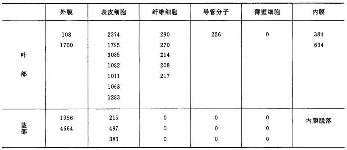 表2-7-11 硅在芦苇各种细胞中的相对峰值