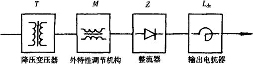 释义 | 硅弧焊整流器基本原理 硅弧焊整流器是用硅二极管作为整流元件的一种弧焊机,基本工作过程如图11-7所示。 图11一7 弧焊整流器原理框图 1.变压器T: 它将网路电压220/380V降至几十伏,有单相和三相两类,可通过改变匝数和接法调节空载电压,可通过改变漏抗的方法,调节输出特性和焊接电流。 2.外特性调节机构M: 有机械式和电磁式两类。机械式调节机构与弧焊变压器的外特性调节机构相同,有抽头式、动绕组式、动铁式,其特点是通过改变降压变压器的绕组匝数、初次级相对位置或动静铁心的相对位置,调节漏抗值,来完成外特性的调节。电磁式是在平特性降压变压器与桥式整流器之间加一个饱和电抗器M,获得恒压、恒流,或缓降外特性输出。磁饱和电抗器若为自饱和无反馈式则获恒流源、全部内反馈获恒压源、部分内反馈,则为缓降外特性。 3.整流器Z: 用硅二极管组成的单相或三相整流桥,将交流整流成直流电。若输出电流在1000A以上时建议采用双反星形带平衡电抗器的整流电路。 4.输出电抗器Ldc: 直流回路中串联的铁心线圈,有滤波,限制电流增长速度,改善动特性的作用。改变电抗器绕组匝数和调节铁心间空气隙长度,可以改变电感量大小。 |