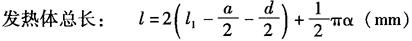 注:表中尺寸单位均为mm,电阻、电压和功率单位分别为Ω、V和W;炉内温度1500℃。表面负荷12W/cm2,元件热端温度1625℃。冷端平均温度800℃。