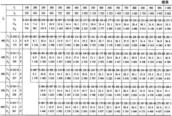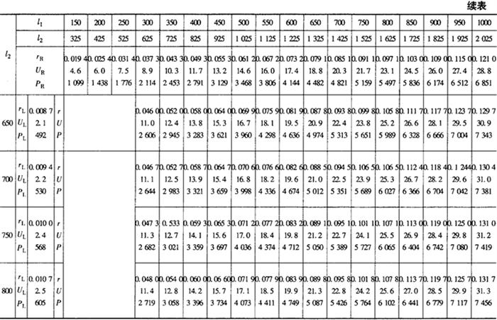 表10-8 直径9/18mm(a=60mm)硅钼棒规格(电流238A)