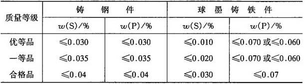 注:1.球墨铸铁件的硫含量系指球化处理后的含量.
