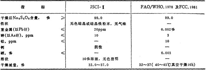 国外质量规格参考(JSCI-Ⅱ;FAO/WHO,1978;FCC,1981)