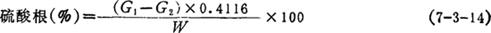 释义 | 硫酸根的测定 (一)硫酸钡重量法(烘干) 1.原理 样品溶液调至弱酸性,加入氯化钡,生成三硫酸钡沉淀经过滤、洗涤、干燥、称重,计算含量。 2.适用范围 工业盐、食用盐、氯化钾、氯化镁、卤水、无水硫酸钠。 3.测定手续 吸取100.0ml样品溶液(含硫酸根10~150mg)于烧杯中,加50ml水,2滴0.2%甲基红,滴加2mol/L盐酸至溶液呈红色,加热至近沸,迅速加入40m0.02mol/L氯化钡热溶液,搅拌2~3min,再加少许氯化钡溶液,检查沉淀是否完全,用已于120工2℃恒重的4号玻璃坩埚抽滤,沉淀移入坩埚并洗涤,然后置电烘箱中于120±2℃烘1h取出,在干燥器中冷至室温称量,直至恒重。 4.计算 式中 G1——玻璃坩埚加硫酸钡质量(g) G2——玻璃坩埚质量(g) W——所取样品质量(g) 0.4116——硫酸钡换算为硫酸根的系数 (二)硫酸钡重量法(灼烧) 1.原理 样品溶液中加入氯化钡,生成硫酸钡,经沉淀、过滤、洗涤、灼烧后称量,计算含量。 2.适用范围 同烘干重量法。 3.测定手续 吸取100.0ml样品溶液(含硫酸根10~150mg)于烧杯中,加50ml水,2滴甲基红,滴加2mol/L盐酸至溶液呈红色,加热至近沸,迅速加入40ml 0.02mol/L氯化钡溶液,搅拌2~3min,检查是否沉淀完全,用定量滤纸过滤、洗涤,将沉淀连同滤纸放在已恒重的坩埚中低温灰化,然后在高温炉中于800±20℃灼烧1h,在干燥器中冷至室温称重。 4.计算 同烘干重量法 (三)络合滴定法 1.原理 样品溶液中硫酸根与氯化钡生成硫酸钡沉淀,过剩钡离子用EDTA标准溶液滴定,间接测定硫酸根含量。 2.适用范围 工业盐、食用盐、氯化钾、氯化镁、卤水。 3.测定手续 吸取10.00ml样品溶液(含硫酸根2~15mg),加1滴1mol/L盐酸,5.00ml 0.02mol/L氯化钡溶液,搅拌片刻,静置10min,加入5ml Mg-EDTA溶液,10或15ml无水乙醇(占总体积约30%),5ml氨性缓冲溶液,4滴0.2%铬黑T指示液,用0.02mol/L EDTA标准溶液滴定呈亮蓝色。另取10.00ml试液测定钙、镁离子总量。 4.计算 式中 V1——滴定5.00ml氯化钡溶液EDTA标准溶液的用量(ml) V2——滴定钙、镁离子总量EDTA标准溶液的用量(ml) V3——测定硫酸根EDTA标准溶液的用量(ml) TBDTA/SO42-——EDTA标准溶液对硫酸根的滴定度(g/ml) W——所取样品质量(g) 注:硫酸根含量大于0.6%时,氯化钡及Mg-EDTA的加入量加倍。 |