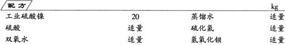 释义 | 硫酸镍 制法 将硝酸盐含量大于0.5%的工业硫酸镍于70℃条件下煅烧后,冷却至室温。经煅烧后的硫酸镍加蒸馏水溶解,制成相对密度为1.25的水溶液。加入纯硫酸酸化至pH值约为1,通入硫化氢,直至重金属硫化物沉淀完全为止。将滤液加热,以逐出过量的硫化氢。加入双氧水氧化,再加入氢氧化钡,直至溶液呈中性,并检查至铁杂质含量已符合产品标准为止。上述沉淀物和水不溶物,用过滤法除去。滤液蒸发,浓缩至相对密度为1.43为止。让浓缩液冷却,结晶,甩干。干燥后密封包装,即为成品。 |